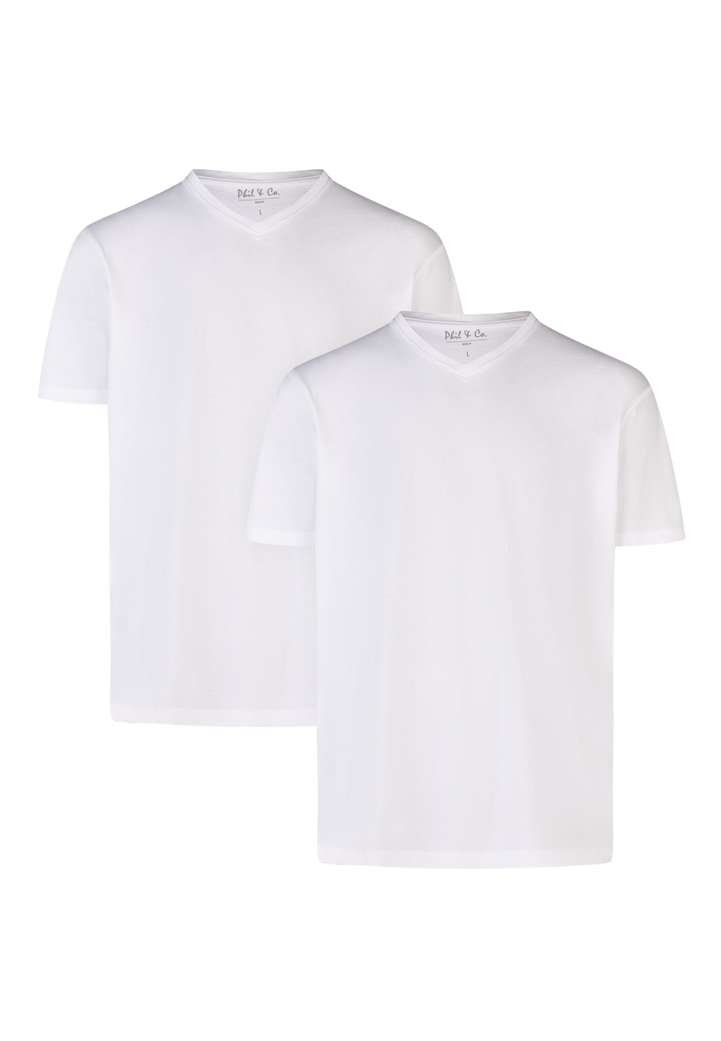 The Phil & Co white men's v-neck undershirt offers ultimate comfort and a timeless fit. Made from 100% cotton, this T-shirt feels soft on the skin and stays fresh even after frequent washing. Thanks to its regular fit, it fits nicely without being too tight, ideal for wearing under your everyday outfit.