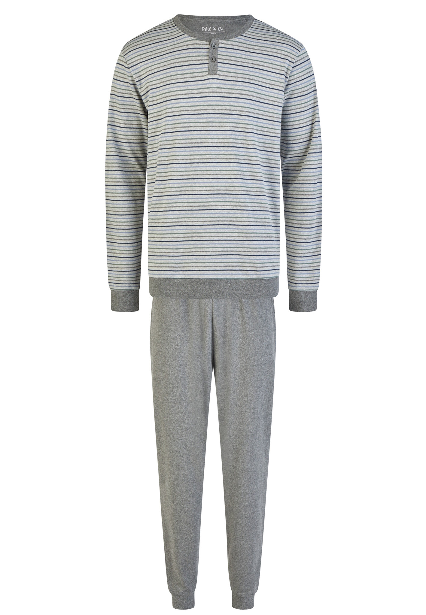 Phil & Co Men's Winter Pajama Set Long Interlock Gray Striped