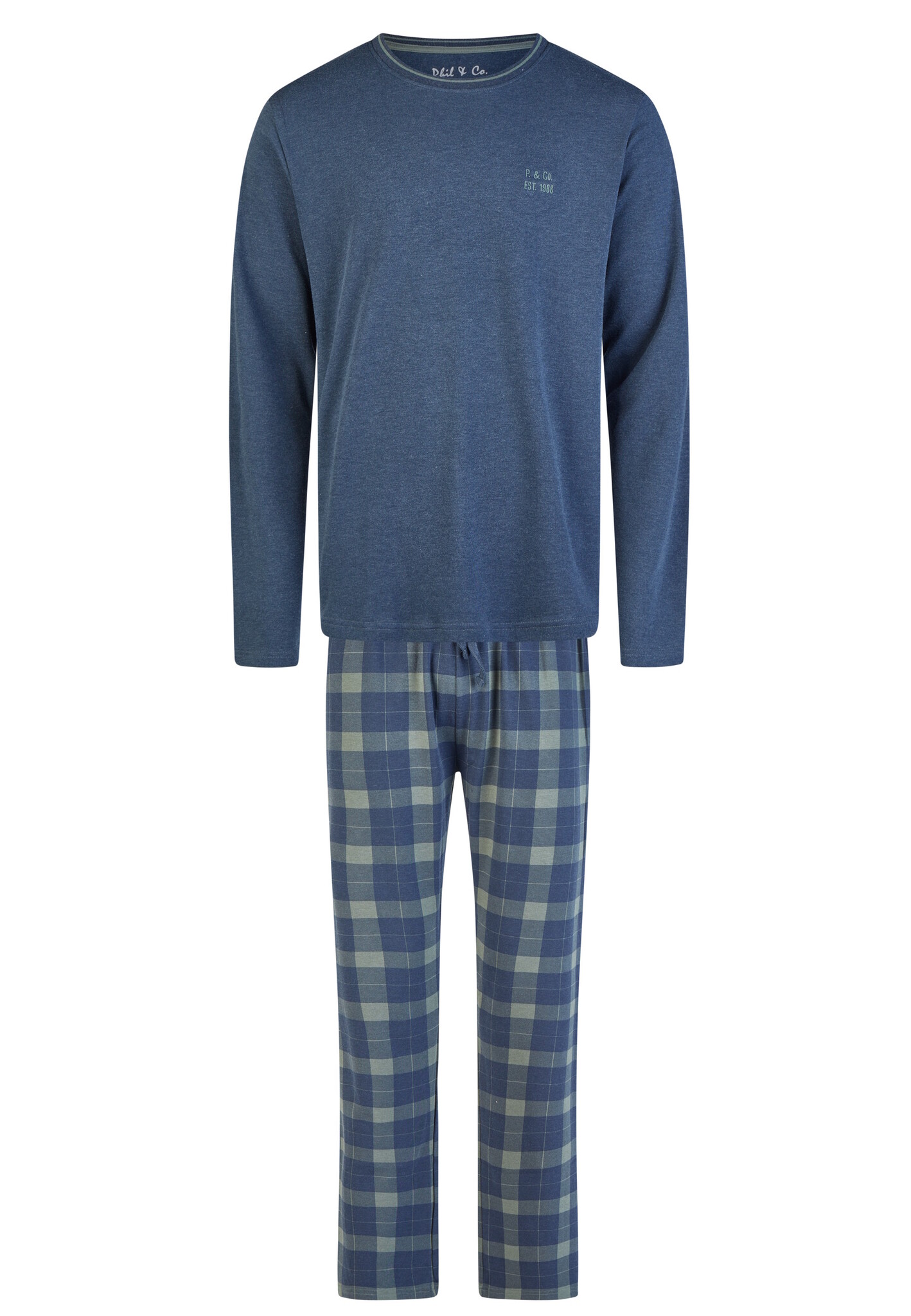 Phil & Co Men's Winter Pajama Set Long Interlock Dark Blue Checkered