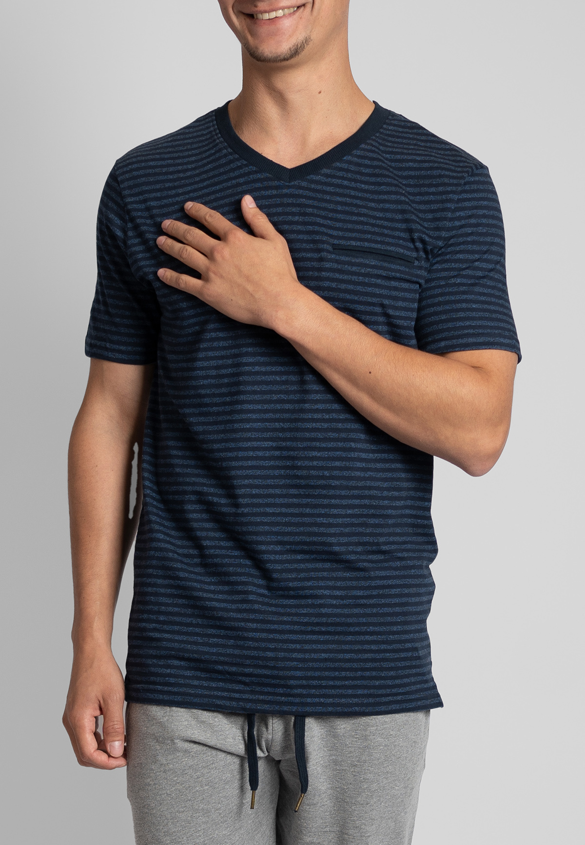 Phil & Co men's pajamas made of cotton single jersey. This men's shortama includes shorts + short sleeve shirt with v-neck. Pajama shirt 60% cotton, 40% polyester. pajama short 80% cotton, 20% polyester.