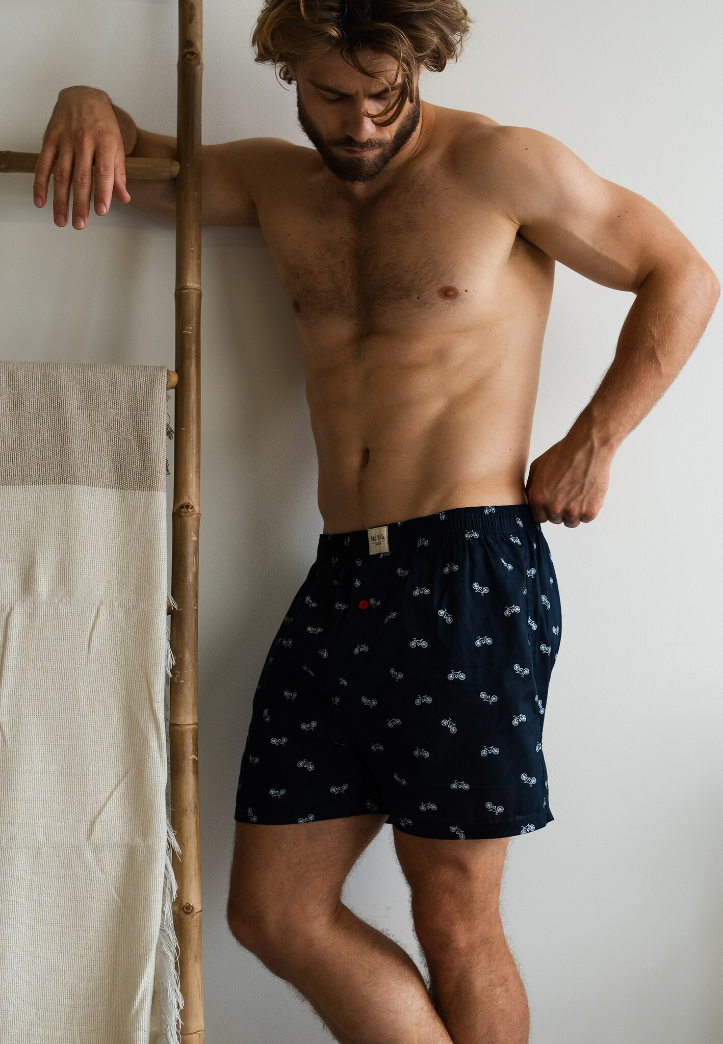 Comfortable Phil & Co wide boxer shorts made of 100% woven cotton. The shorts are loose and wide. The highly elastic yet soft waistband provides little pressure and is comfortable to wear, with button closure.
