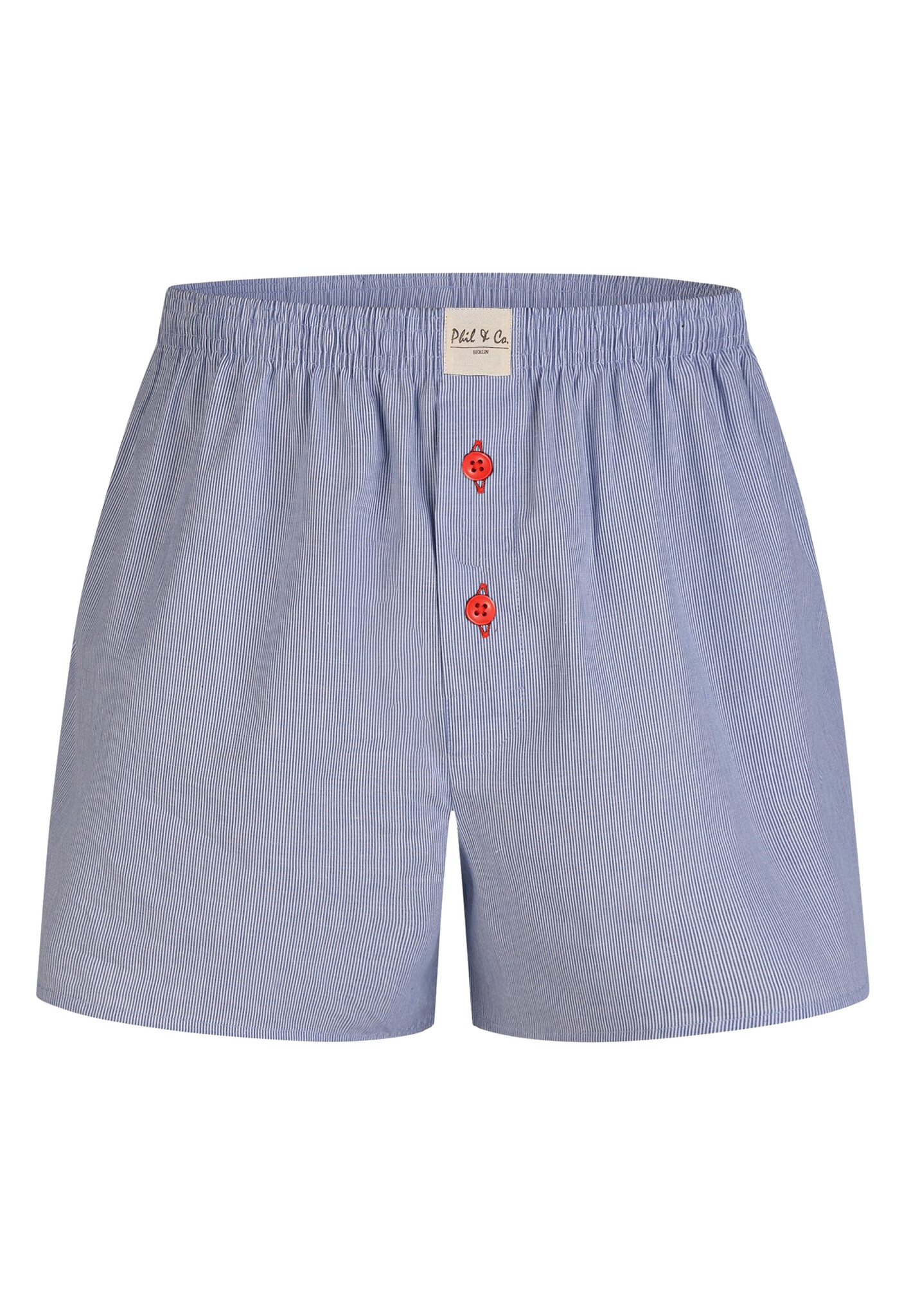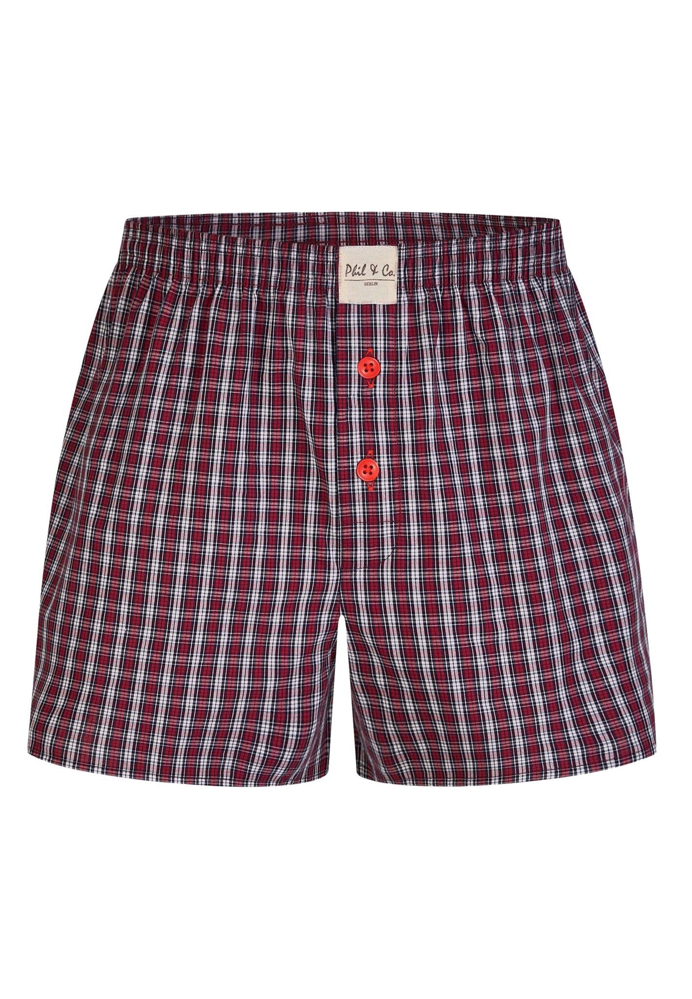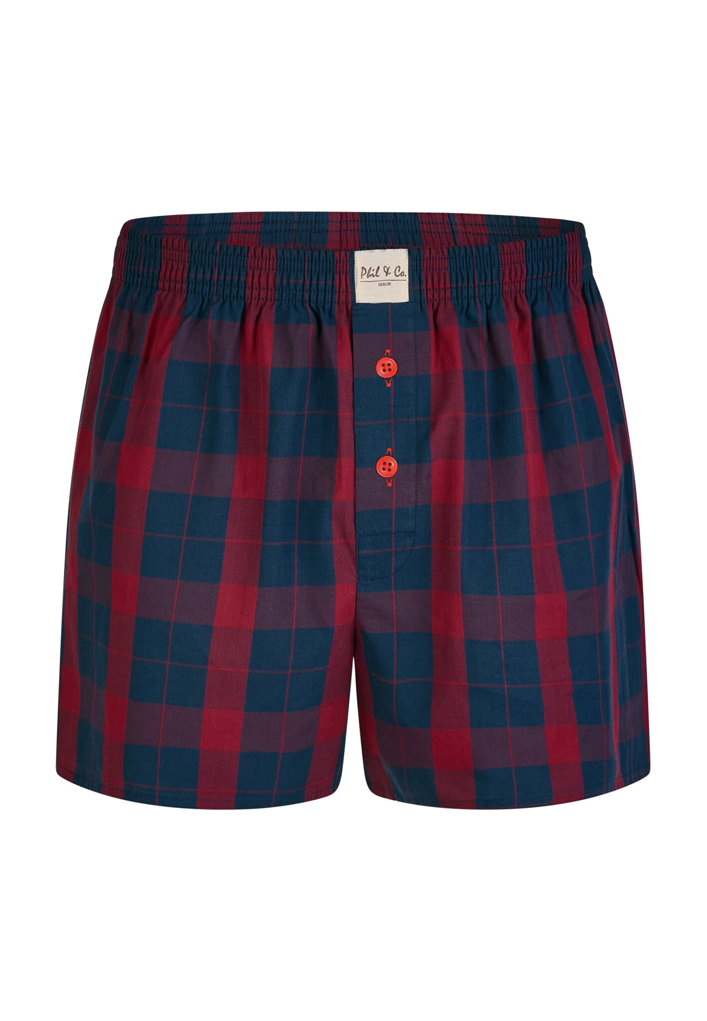 Comfortable Phil & Co wide boxer shorts made of 100% cotton feature fly with button closure. The shorts are loose and wide. The highly elastic, soft waistband provides little pressure and is comfortable to wear. The woven fabric itself has no stretch.