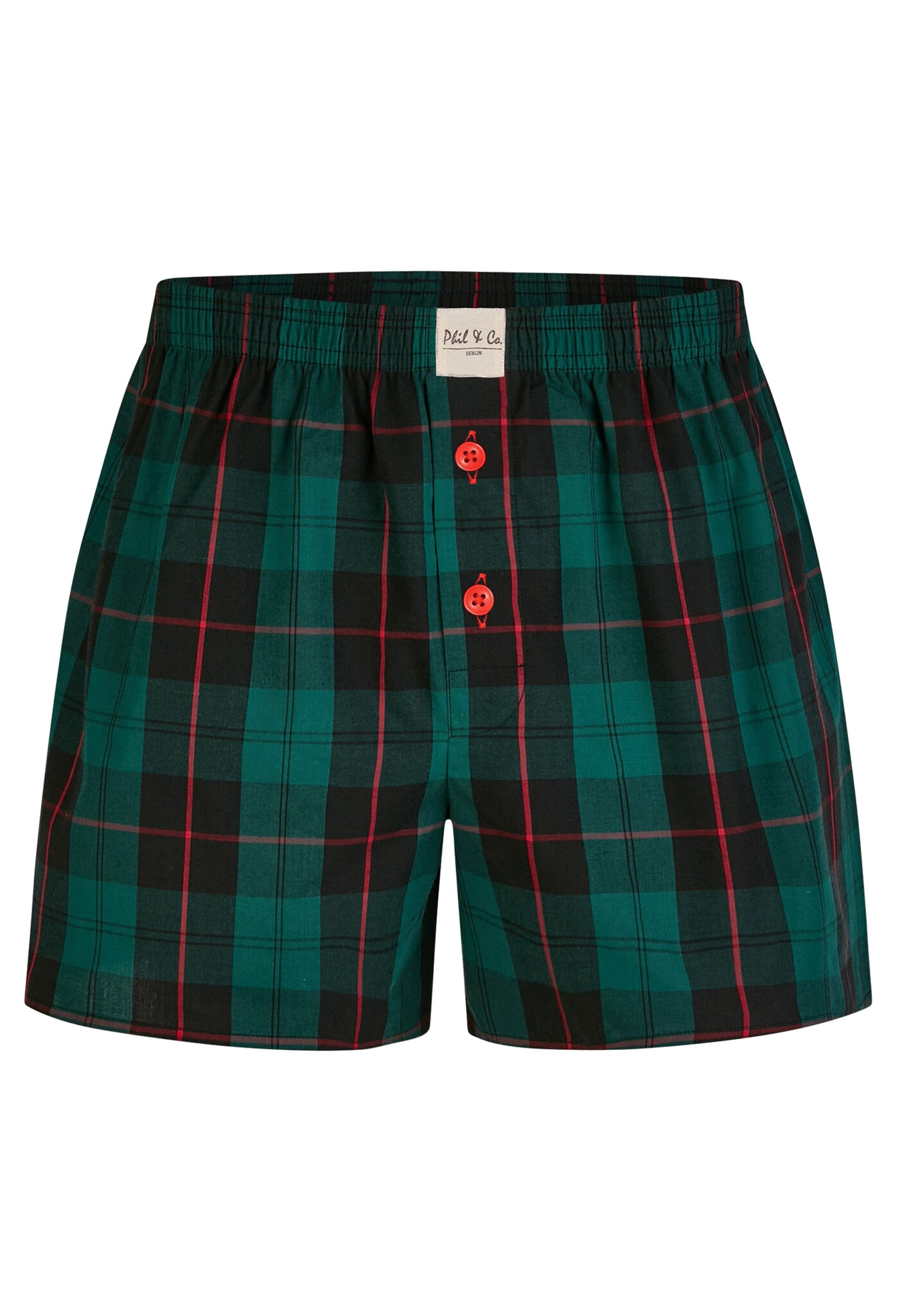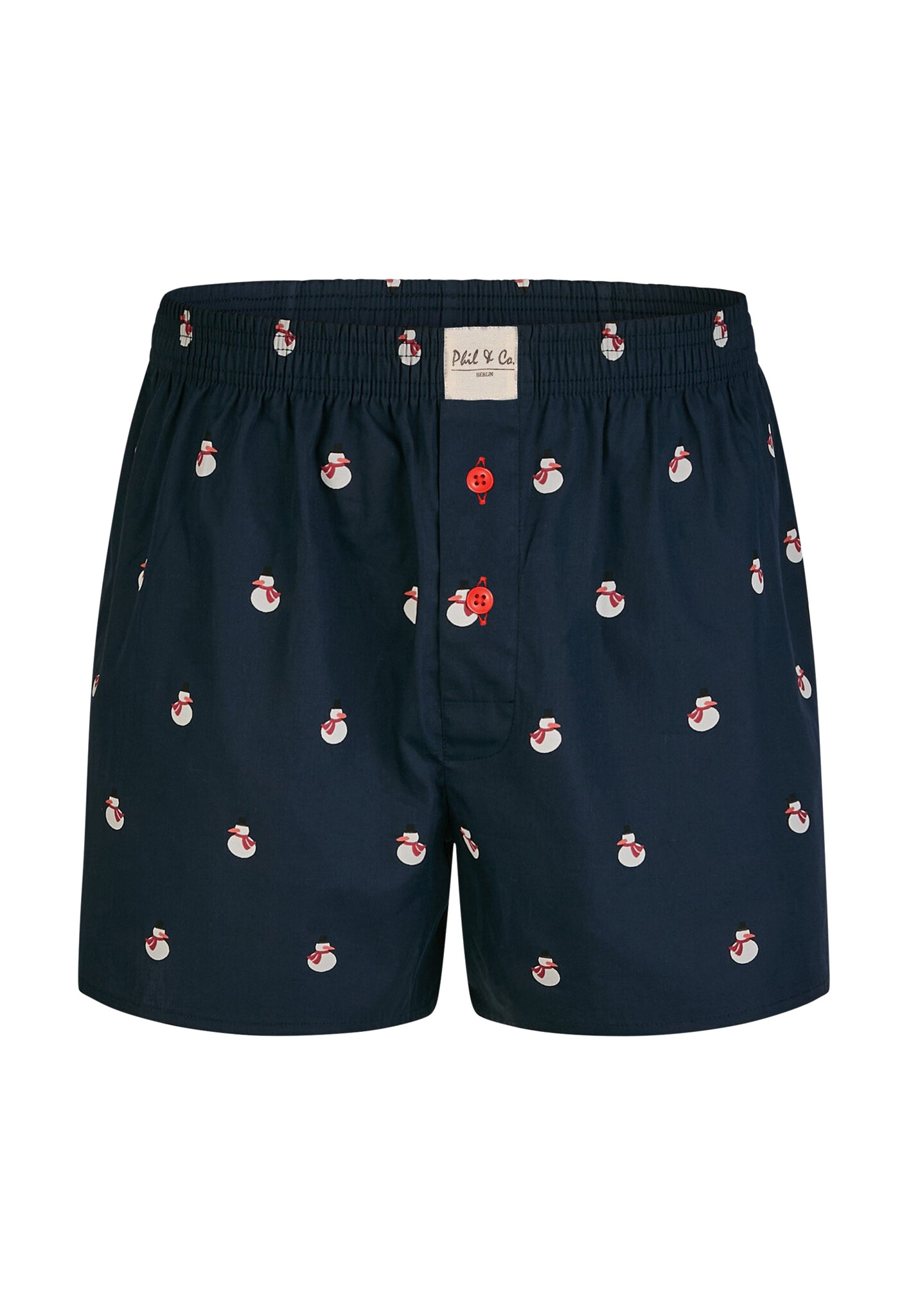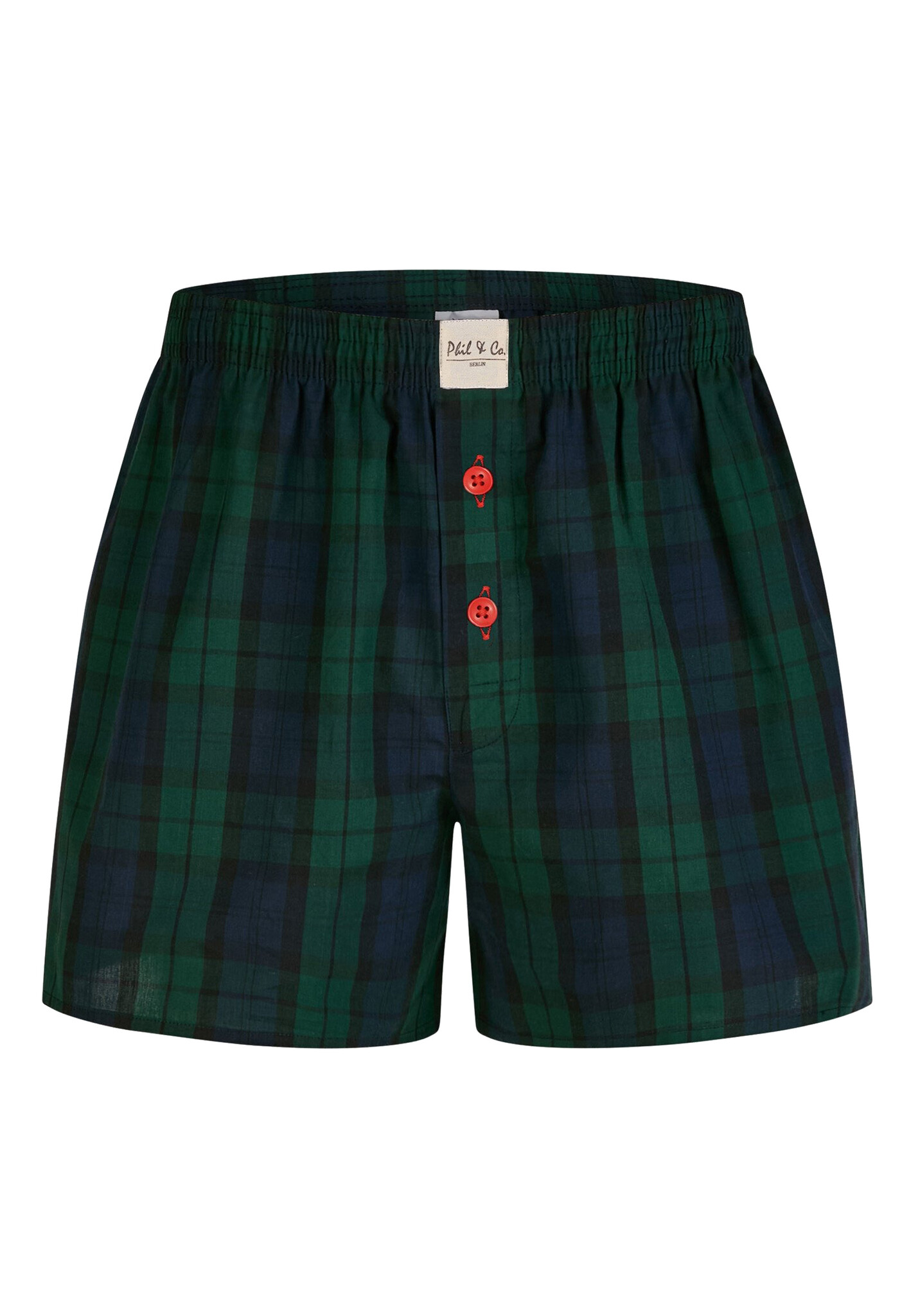 Comfortable Phil & Co wide boxer shorts made of 100% cotton feature fly with button closure. The shorts are loose and wide. The highly elastic, soft waistband provides little pressure and is comfortable to wear. The woven fabric itself has no stretch.