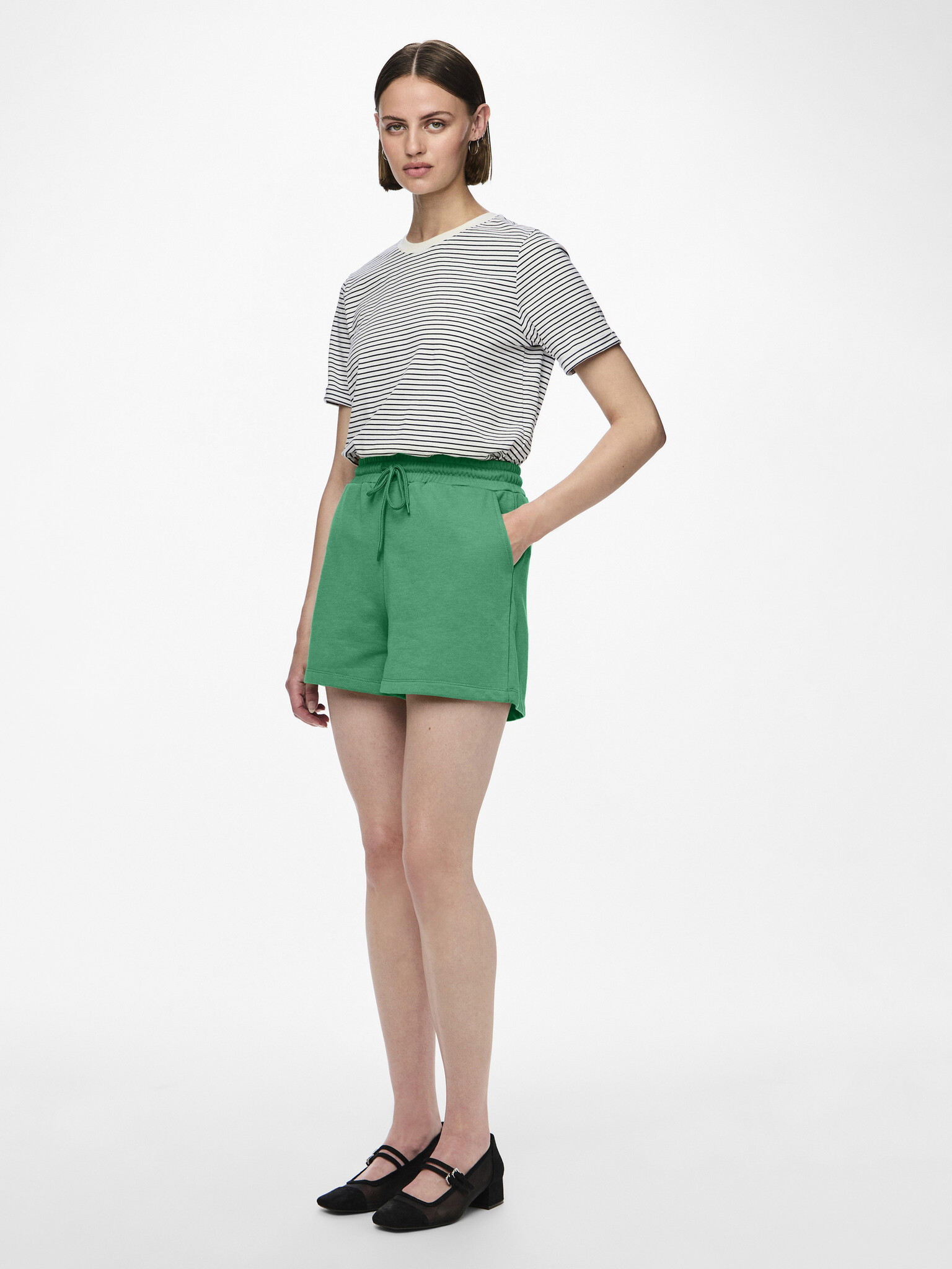 The sweatshorts from Pieces combine comfort with a trendy look, perfect for casual loungewear or a laid-back summer outfit. These women's shorts in solid color are made from soft sweat fabric with recycled polyester and feature an elastic waistband with drawstring closure. The loose fit and high rise provide a comfortable and flattering fit.