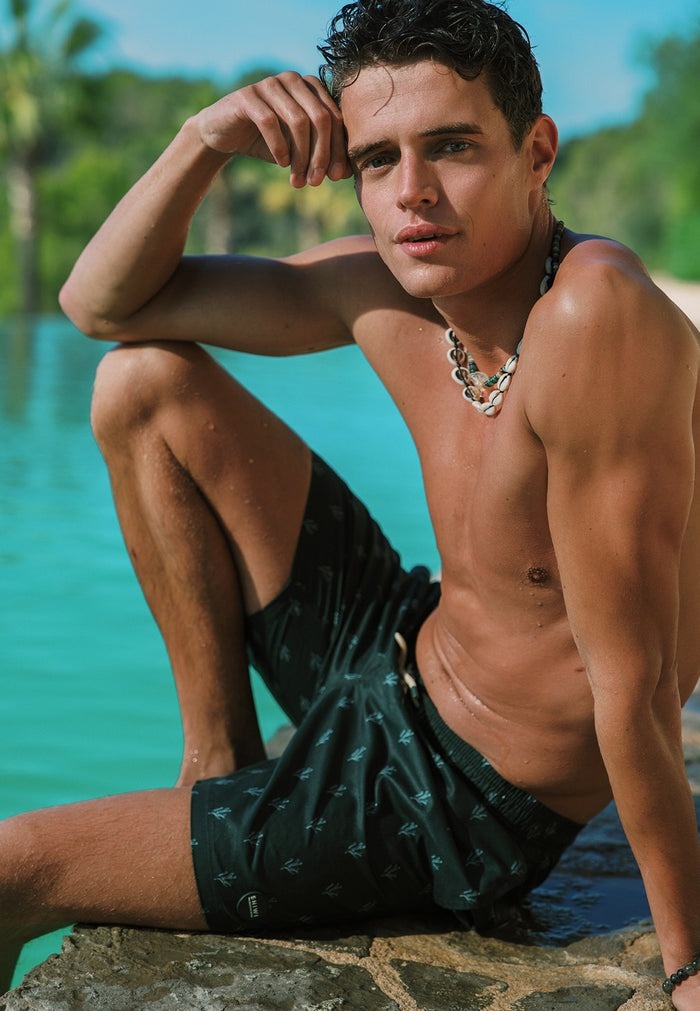 Shiwi Men's Swim Short MIKE 7" Coral Print Dark Green