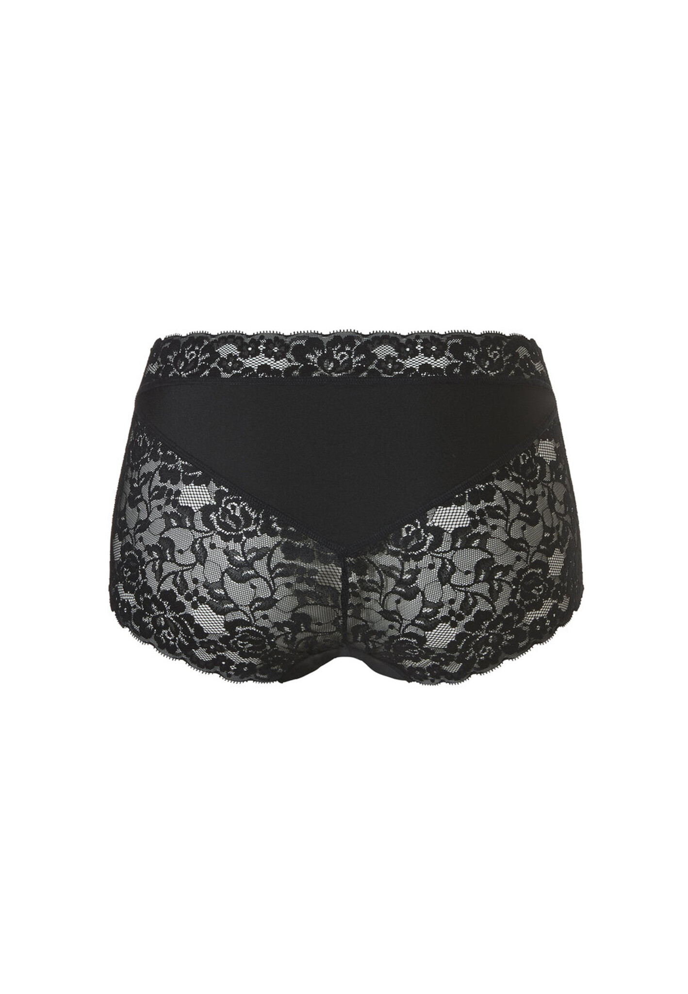 - Fit: high waist model that comes down to the waist and provides full coverage, with a lace back that falls to mid-bottom; features a comfortable cotton gusset