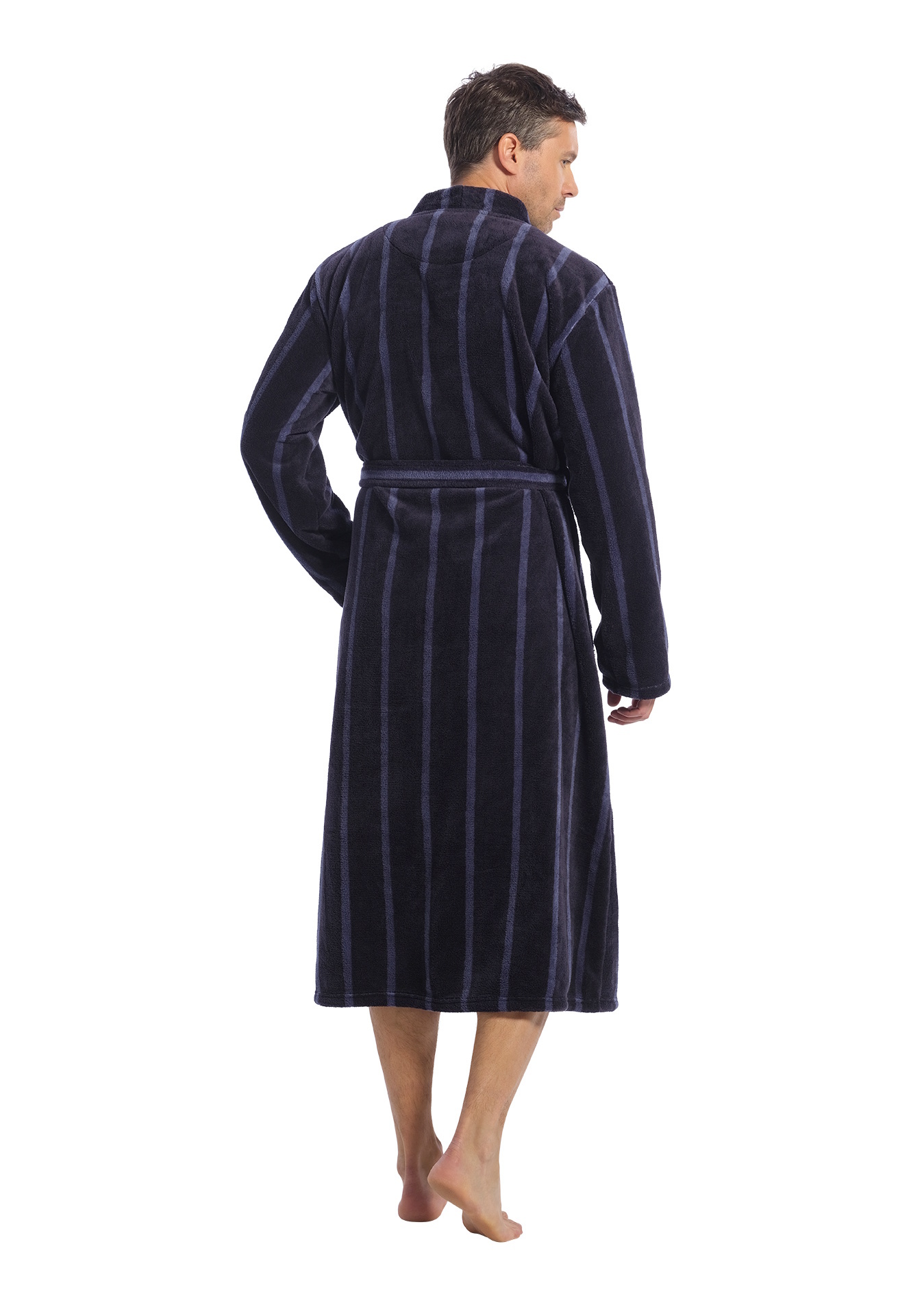 This Ten Cate men's fleece dark blue/blue striped bathrobe is designed for everyday convenience and long-lasting wear.
