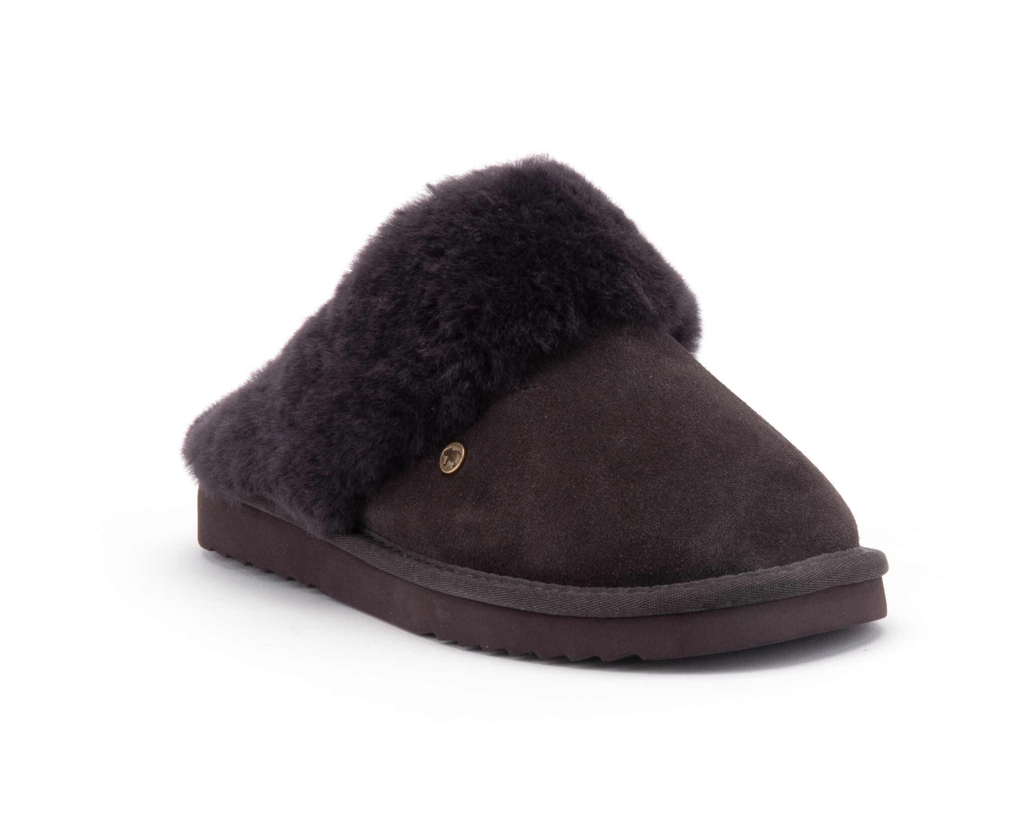 Warmbat Ladies' Slip-on Slippers Suede Flurry Dark Brown
