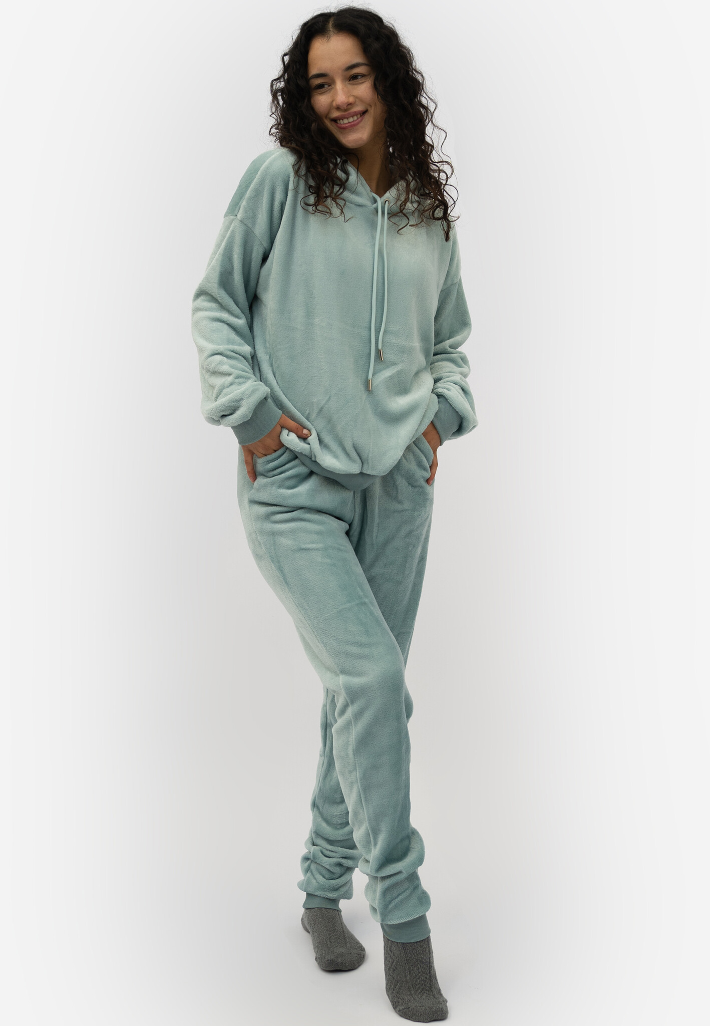 Heerlijke dames loungeset in een stijlvolle pastel kleur, bestaande uit hoodie met lange mouwen en bijpassende joggingbroek met lange broekspijpen. De set is voorzien van comfortabele boorden en een trekkoord in zowel de capuchon van de hoodie als in de tailleband van de joggingbroek.
