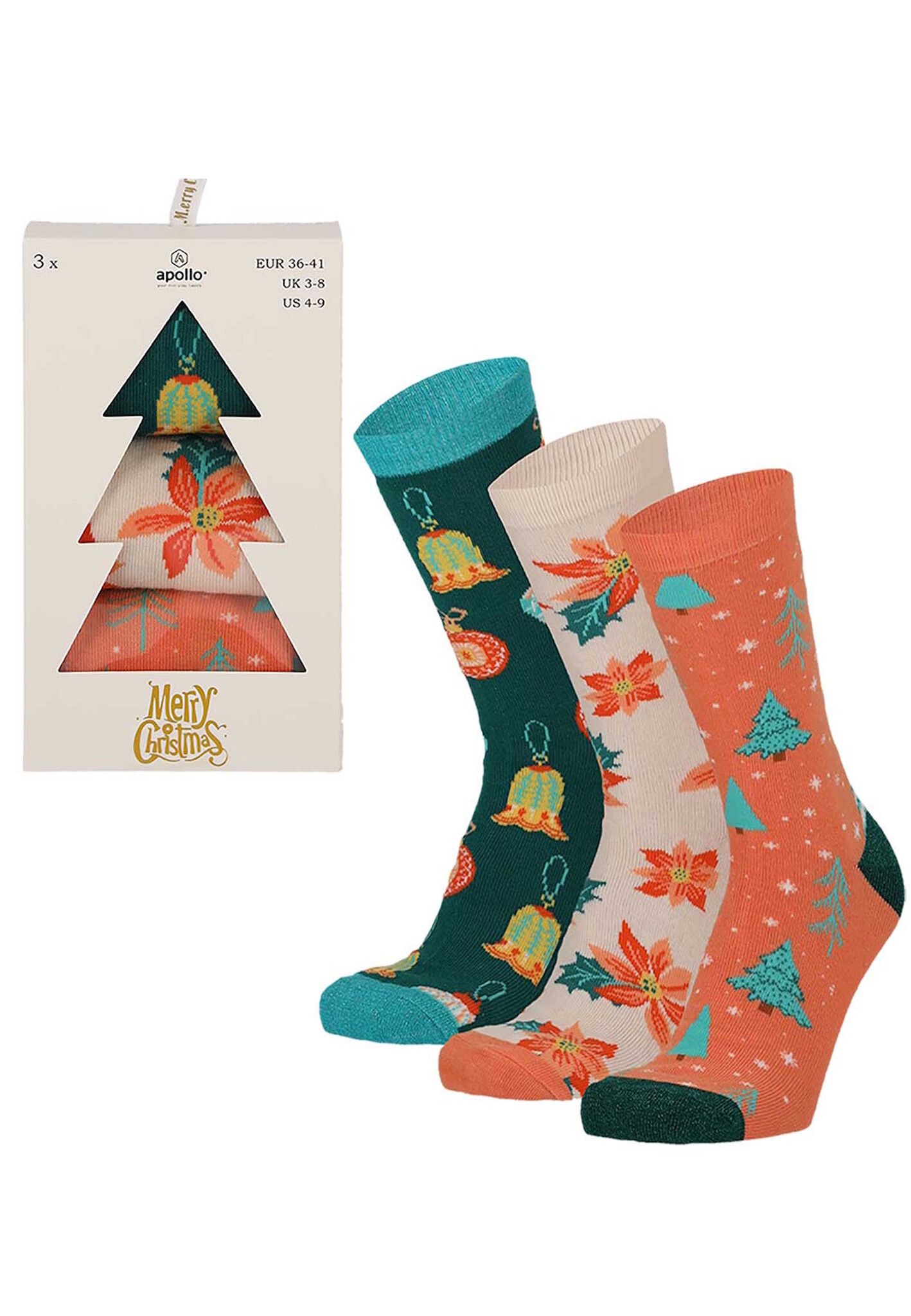Apollo Dames Kerstsokken Giftbox 3-Pack Kerstversiering