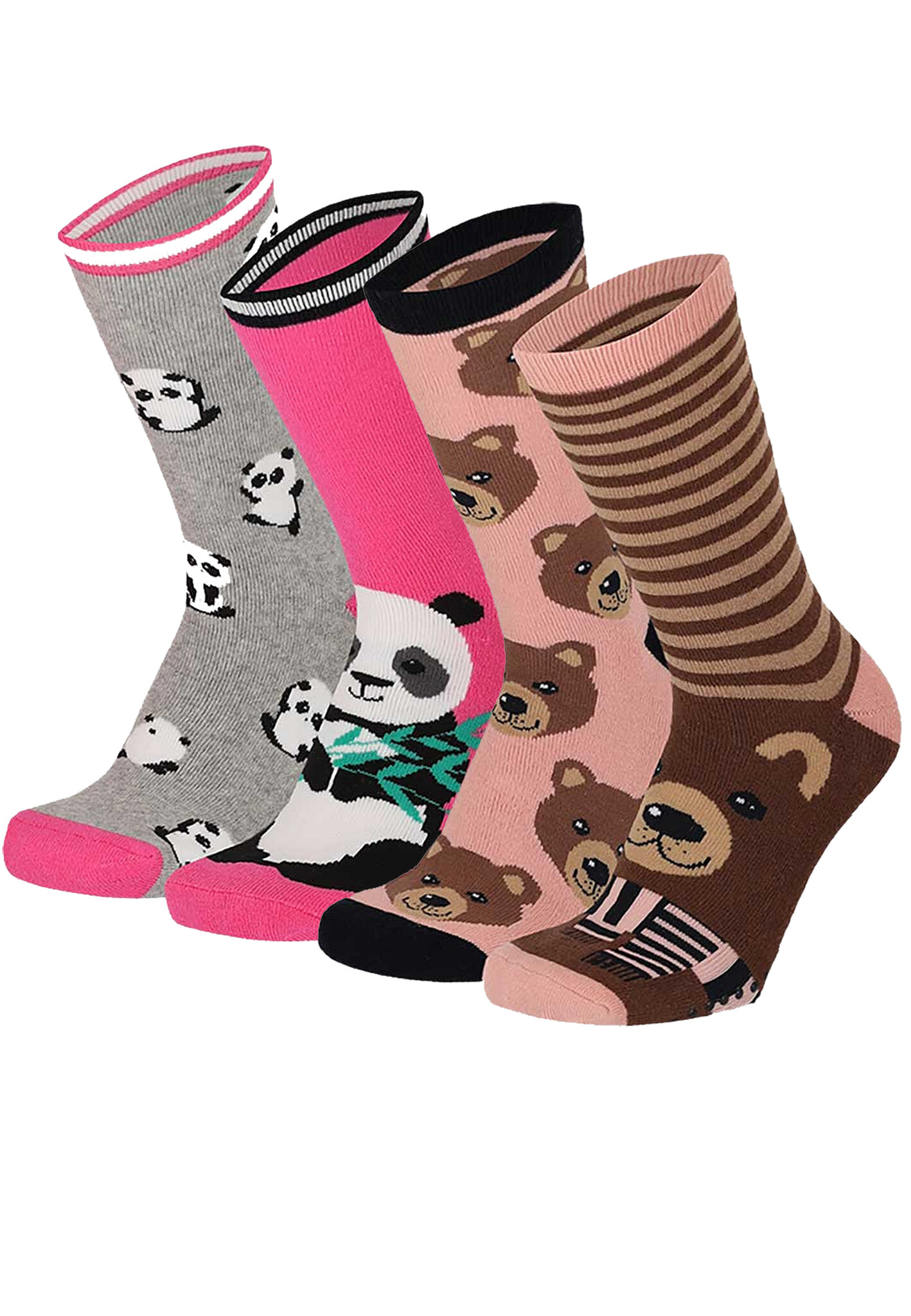 Apollo Meisjes Antislip Sokken 4-Pack Beer/Panda Print