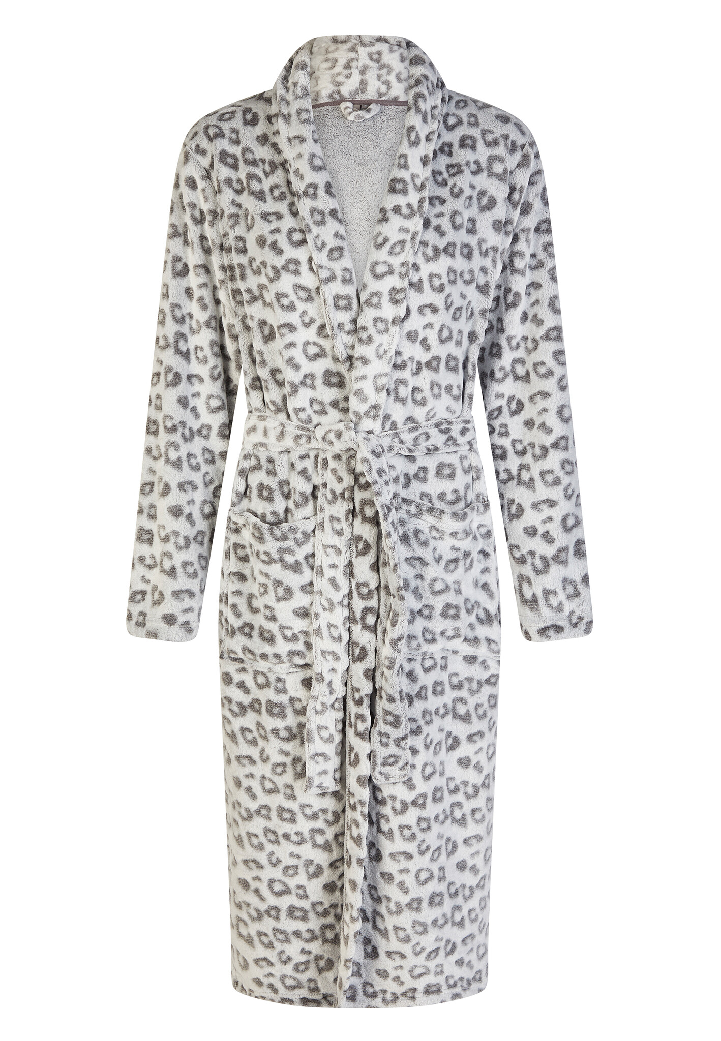 Comfort en stijl in één: de grijze badjas van By Louise met panterprint combineert een opvallend design met heerlijk zacht fleece voor ultiem draagcomfort. Ideaal voor luie ochtenden of ontspannen avonden thuis, deze damesbadjas voelt licht aan en houdt je lekker warm.