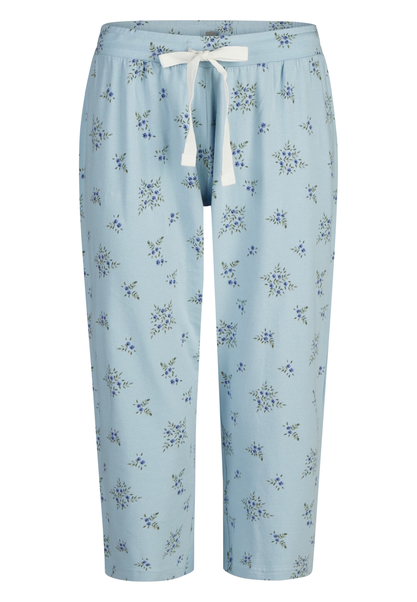 - Bijzondere kenmerken: het wit-blauwe bloemendessin geeft de capri pyjama een frisse en rustige uitstraling.