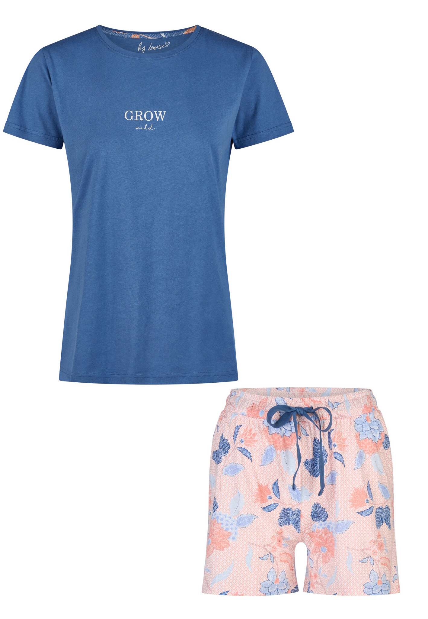 By Louise Dames Korte Pyjama Set Shortama Blauw/Roze Gebloemd