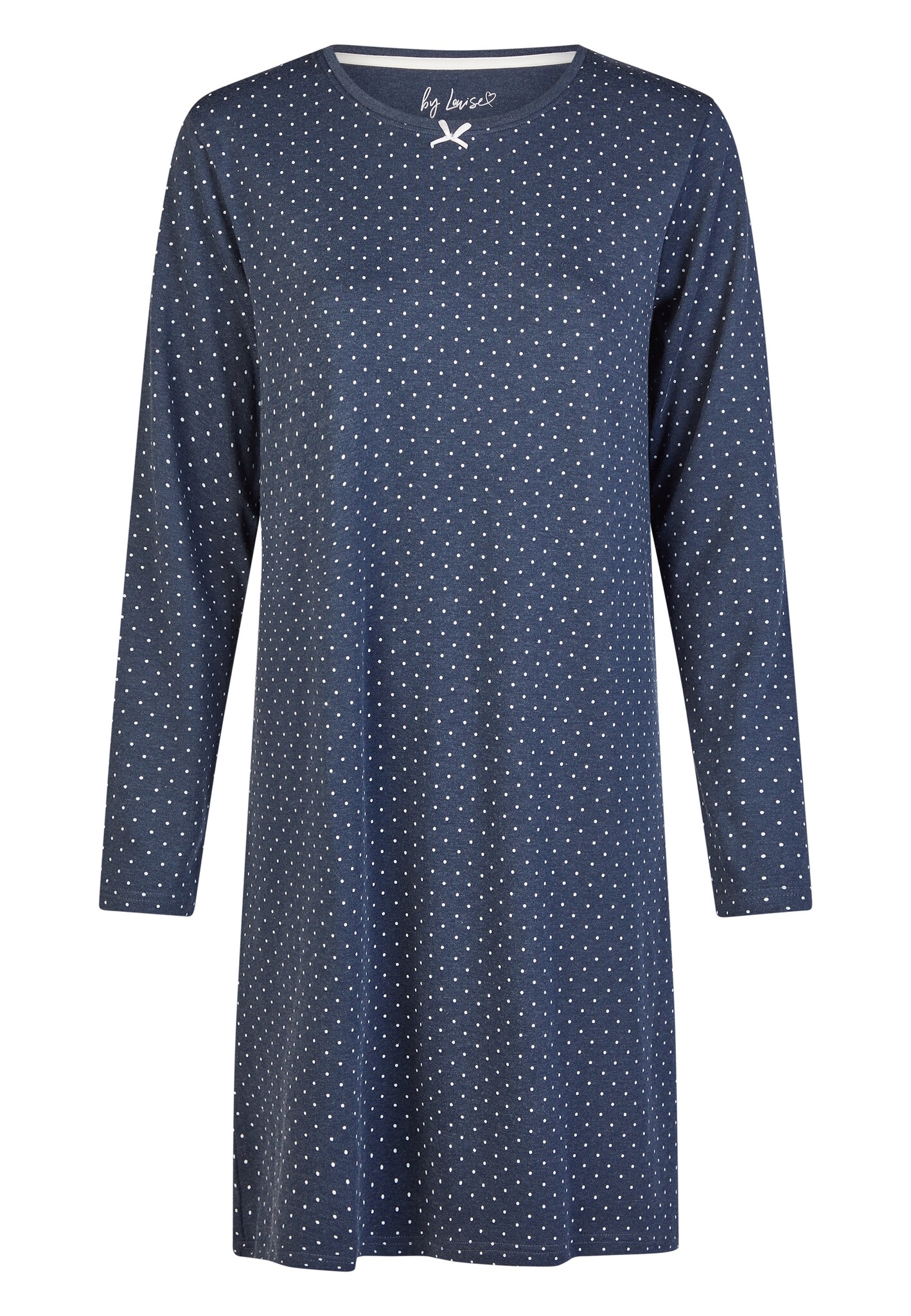 By Louise Dames Nachthemd Interlock Lange Mouw Donkerblauw Gestipt