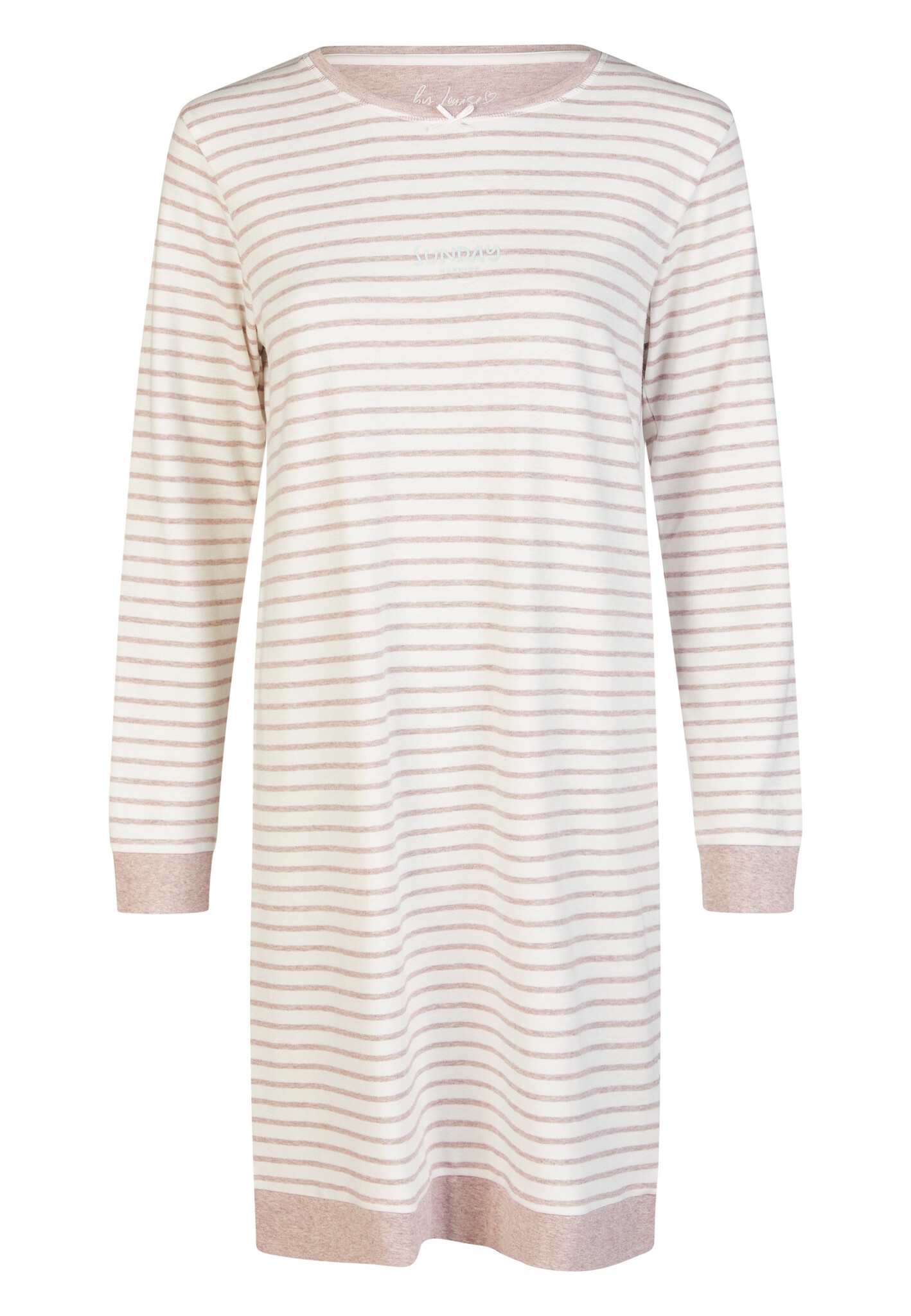 By Louise By Louise Dames Nachthemd Interlock Lange Mouw Wit/Roze Gestreept