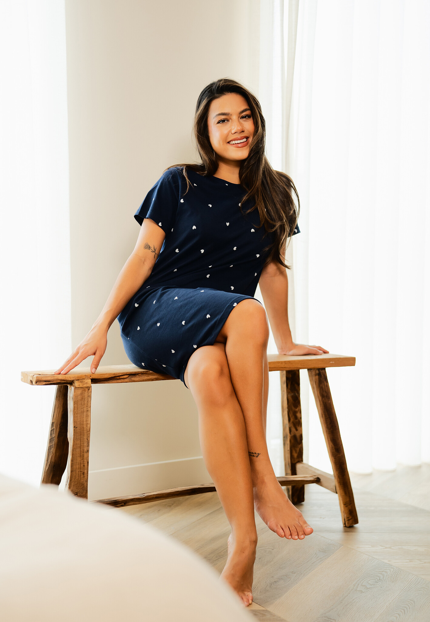By Louise Dames Nachthemd Korte Mouw Blauw Hartjes
