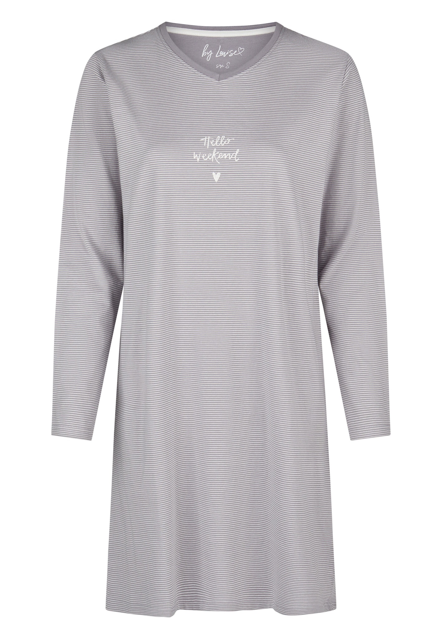 By Louise By Louise Dames Nachthemd Lange Mouw Katoen Grijs Gestreept