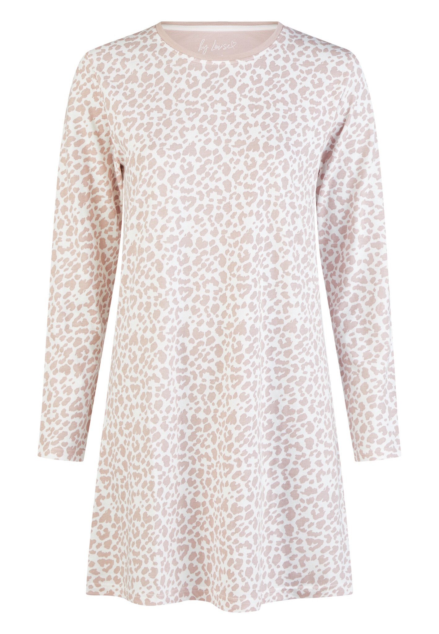 By Louise By Louise Dames Nachthemd Lange Mouw Katoen Wit/Roze Dierenprint