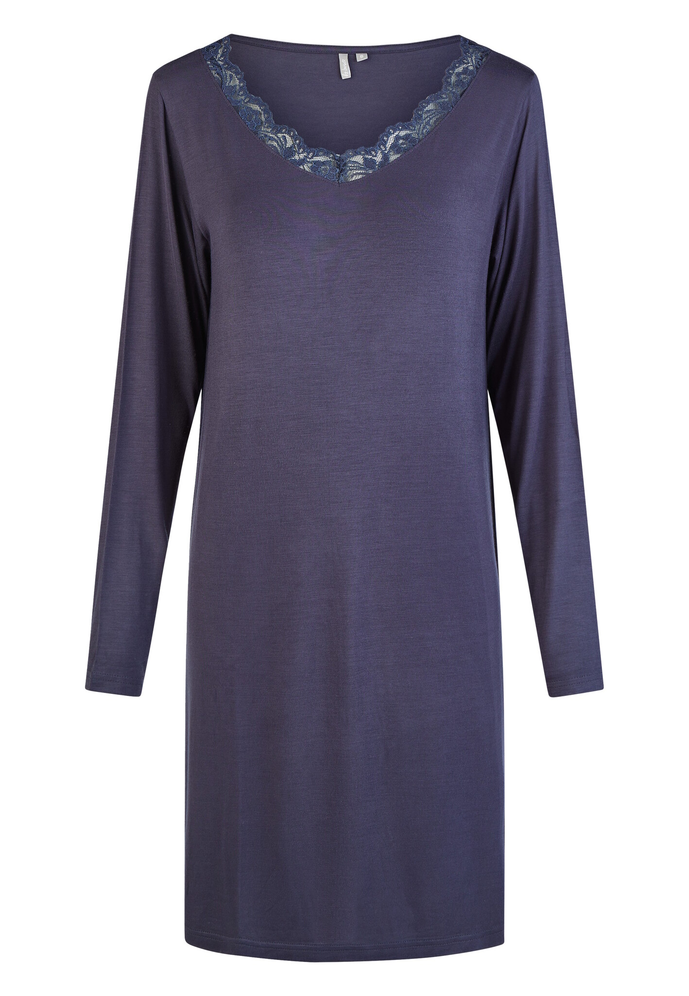 By Louise Dames Nachthemd V-Hals Met Kant Lange Mouw Bamboe Viscose Effen Donkerblauw