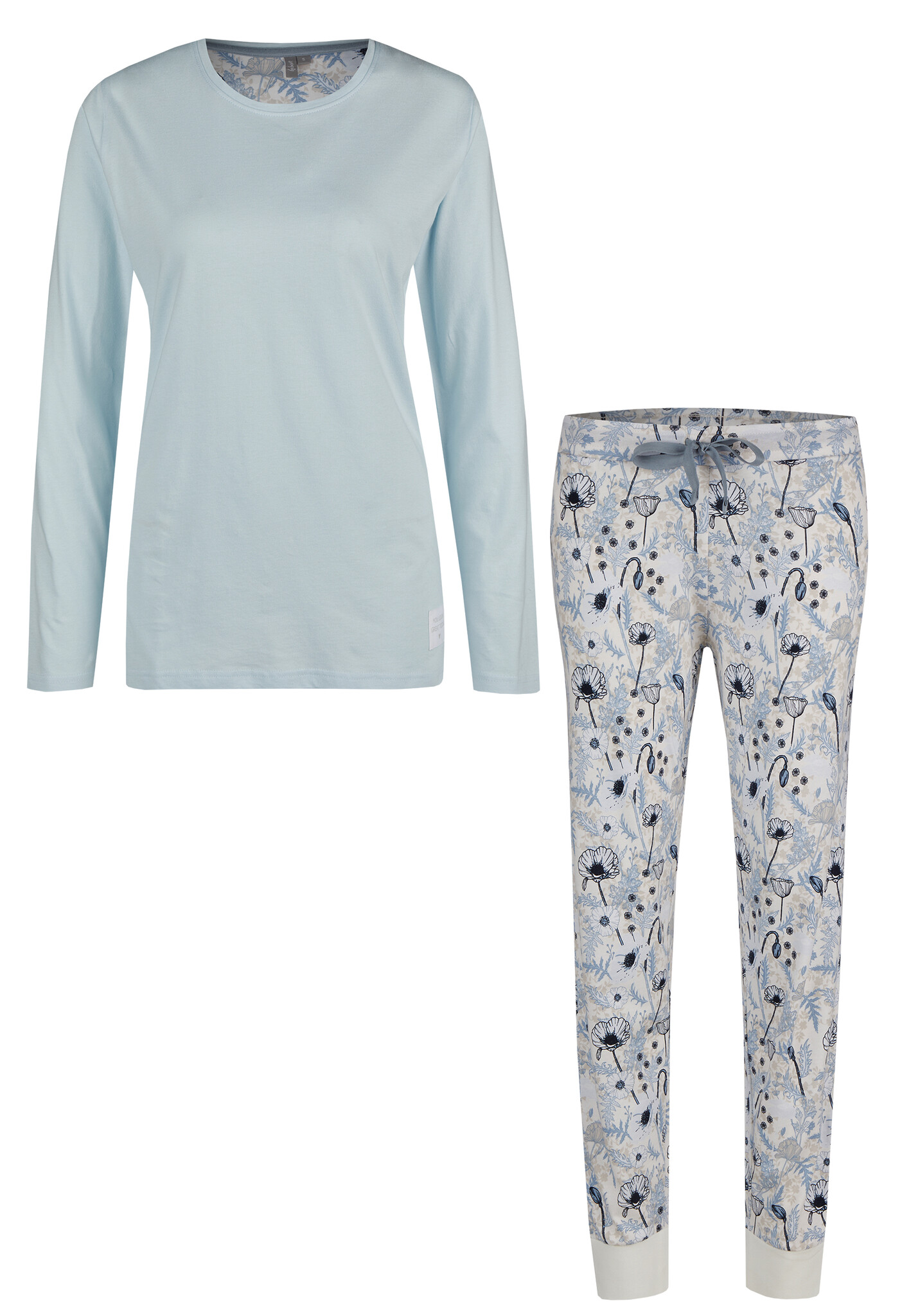 By Louise Dames Pyjama Set Jersey Katoen Gebloemd Lichtblauw