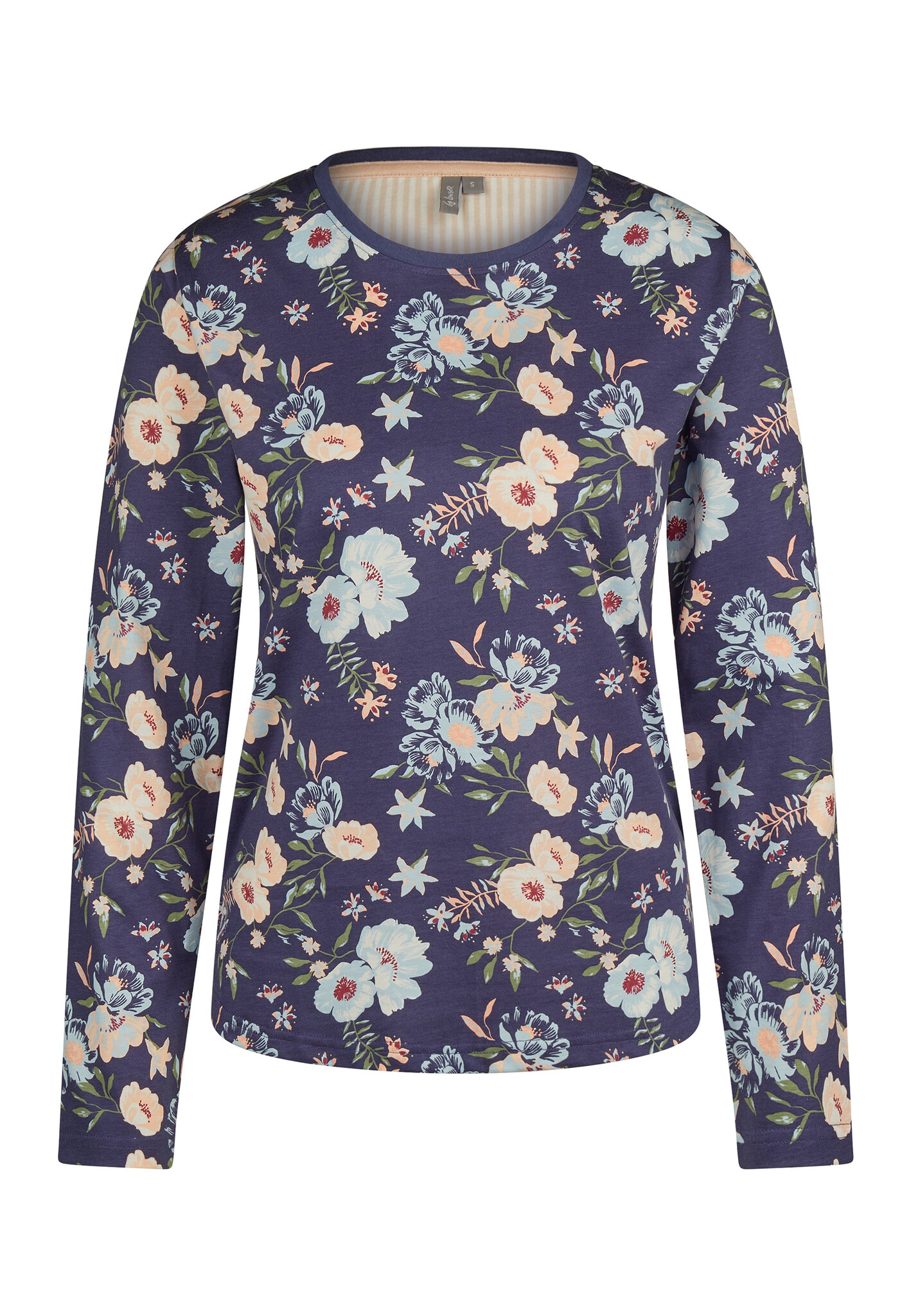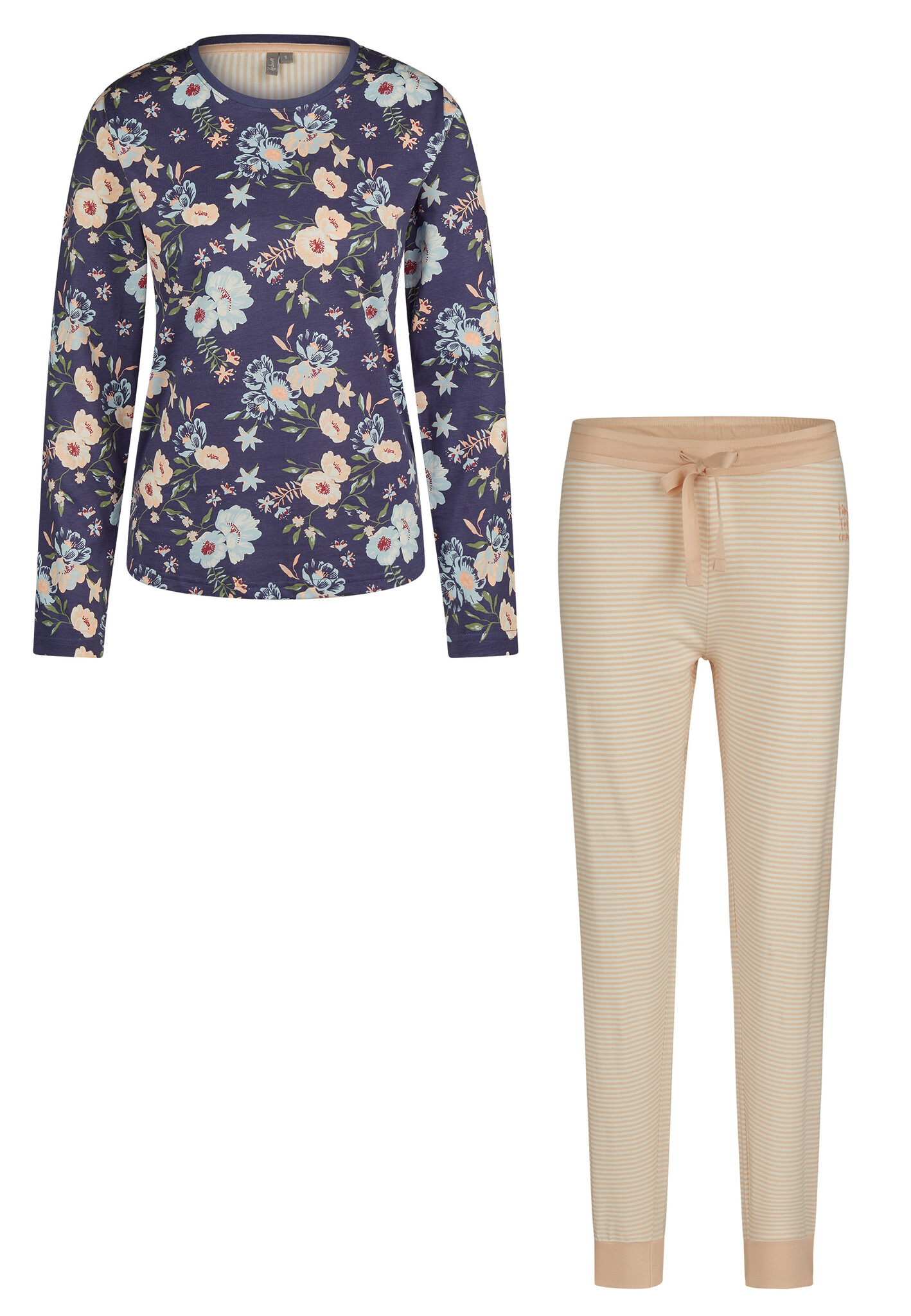 By Louise Dames Pyjama Set Jersey Katoen Gebloemd Blauw Oranje