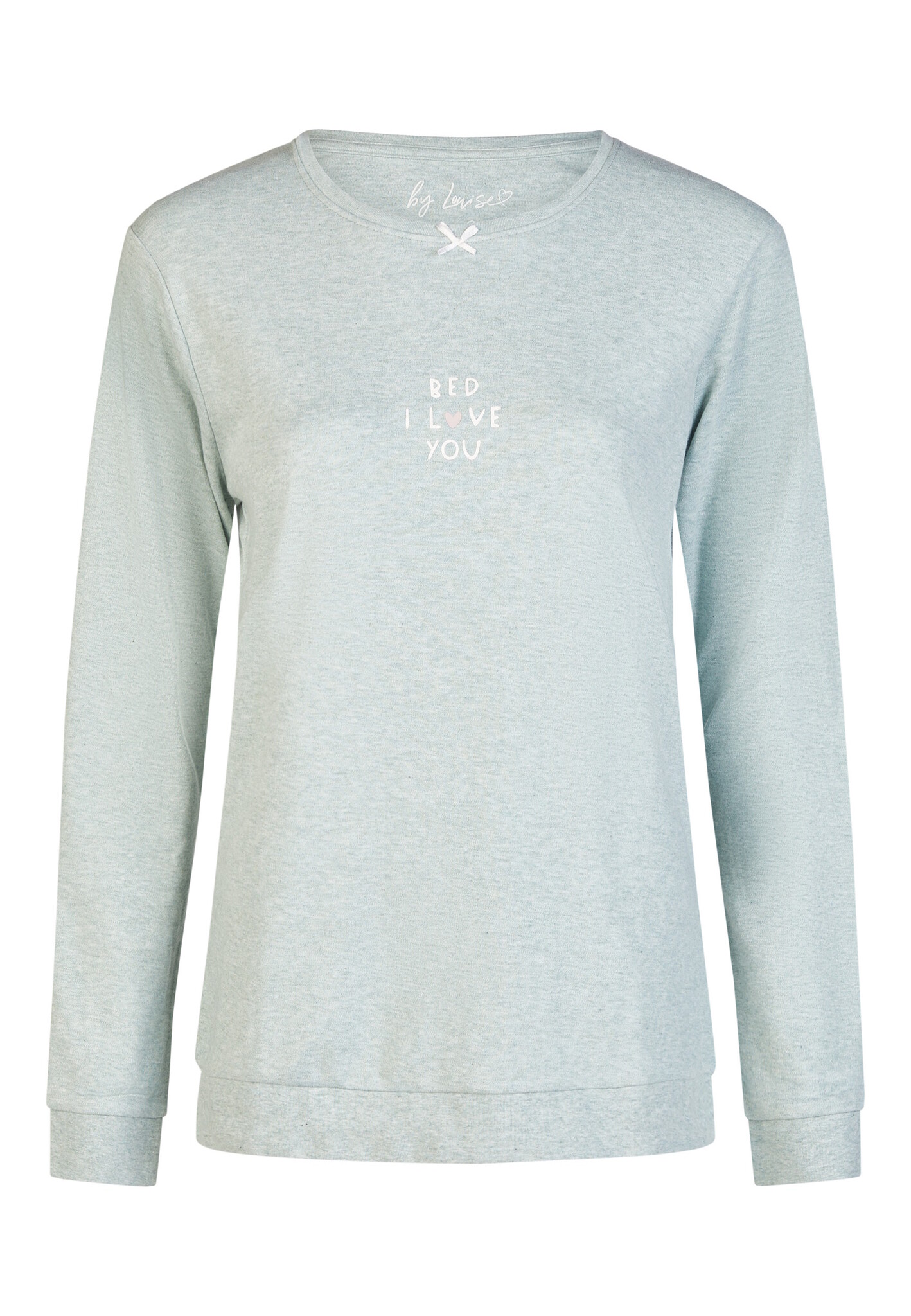 Deze zachte dames pyjama set combineert een fris groen shirt met textprint met een wit gebloemde broek voor een stijlvolle en comfortabele look. De warme interlock kwaliteit voelt heerlijk zacht aan, ideaal voor ontspannen avonden en gezellige nachten.