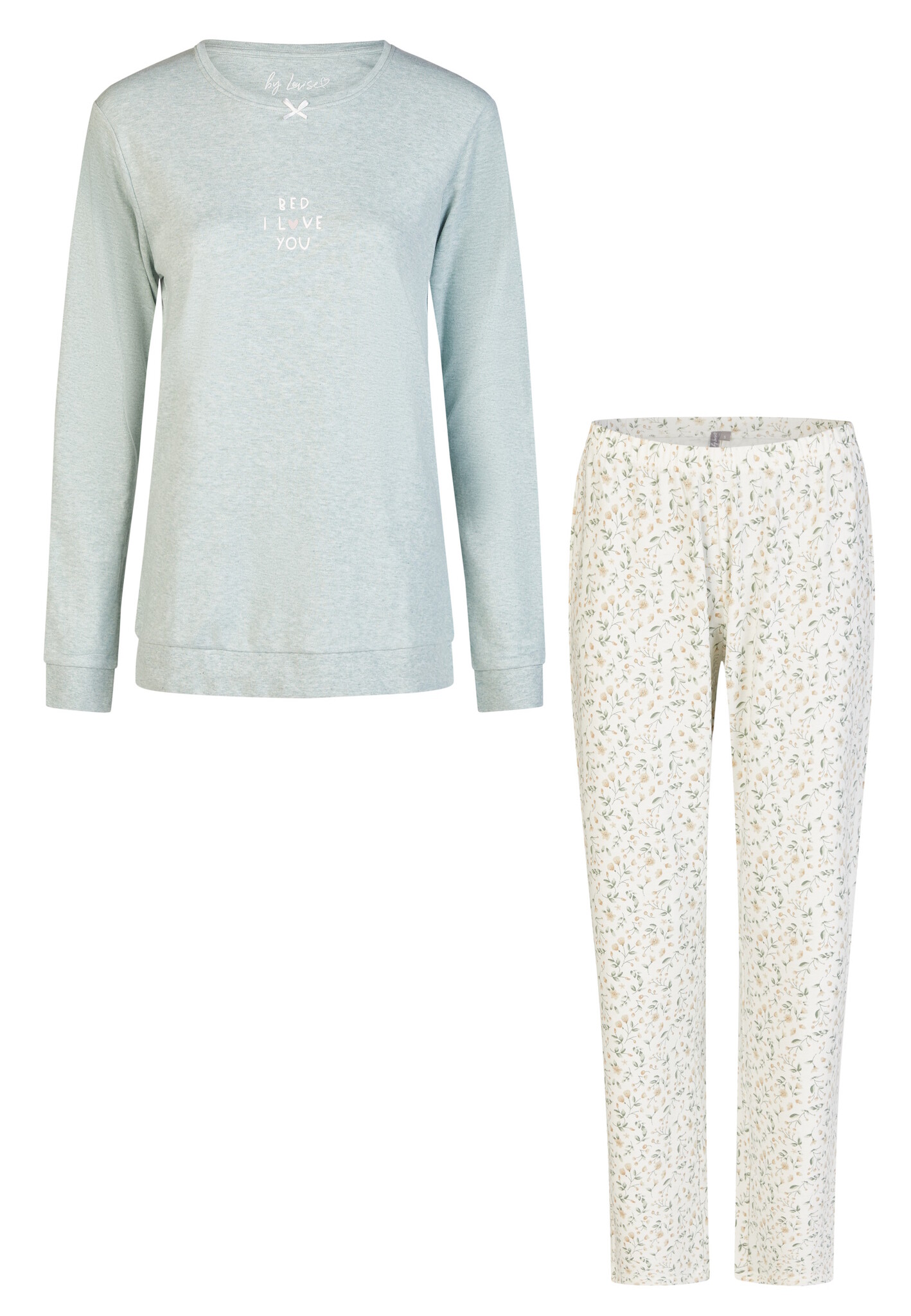 By Louise Dames Pyjama Set Lang Interlock Groen/Wit Gebloemd