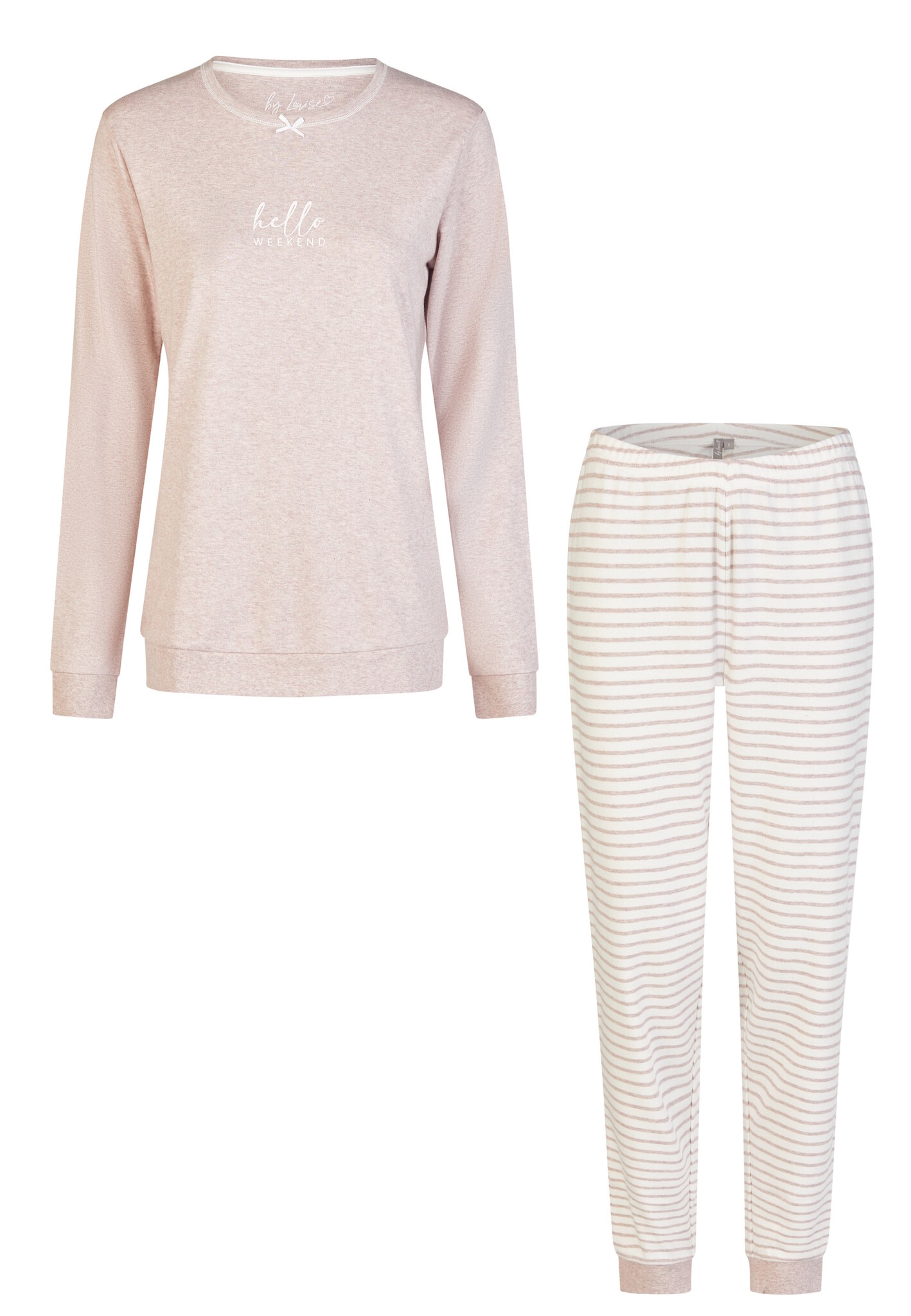 By Louise Dames Pyjama Set Lang Interlock Roze/Wit Gestreept