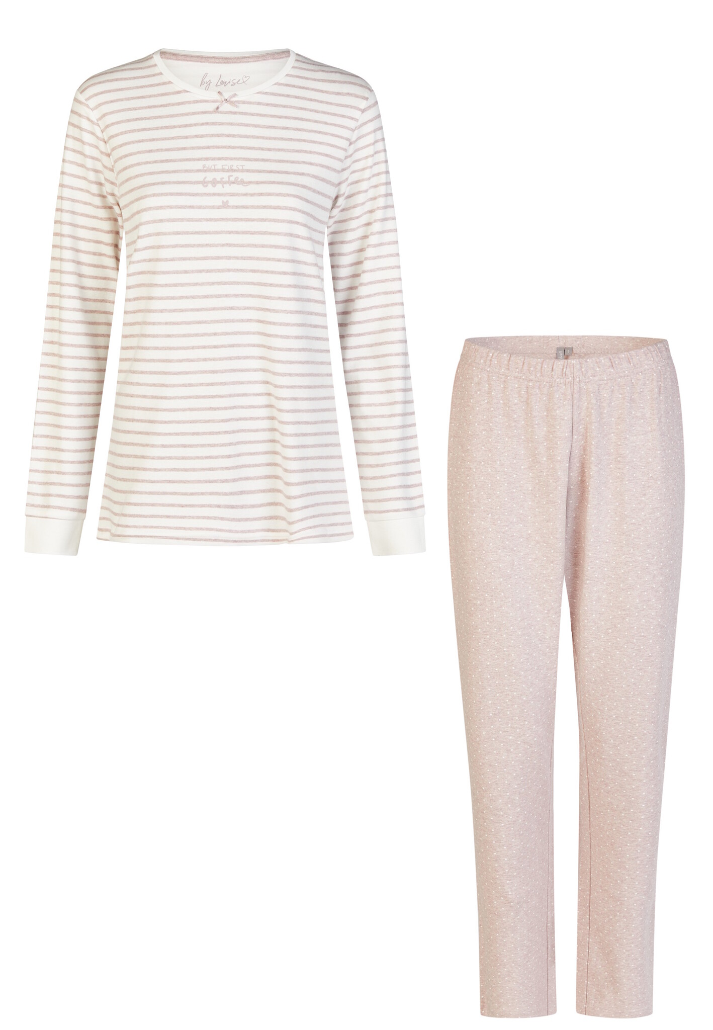 By Louise Dames Pyjama Set Lang Interlock Wit/Roze Gestreept