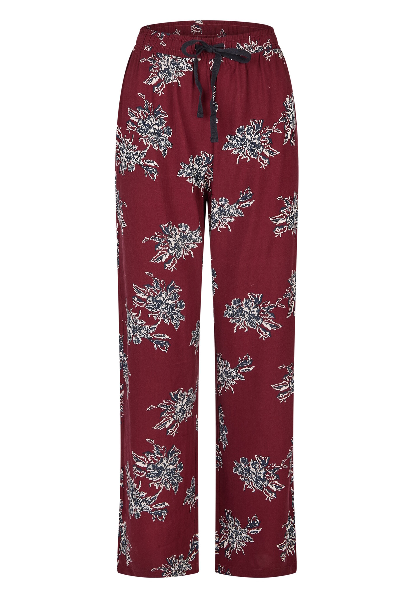 By Louise By Louise Dames Pyjama Set Lang Modal/Bamboe Viscose Donkerblauw/Bordeaux Rood Gebloemd