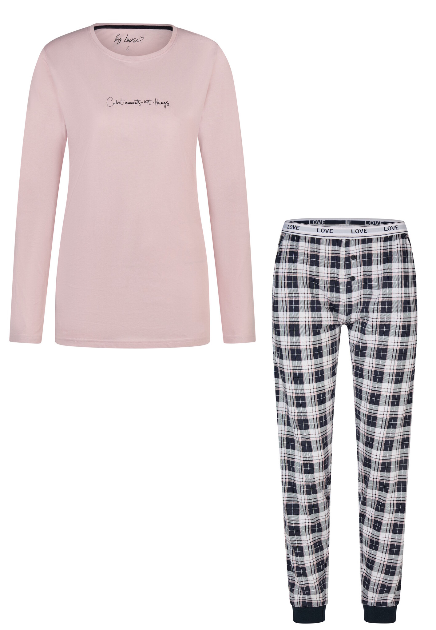 By Louise Dames Pyjama Set Lang Roze/Donkerblauw Geruit