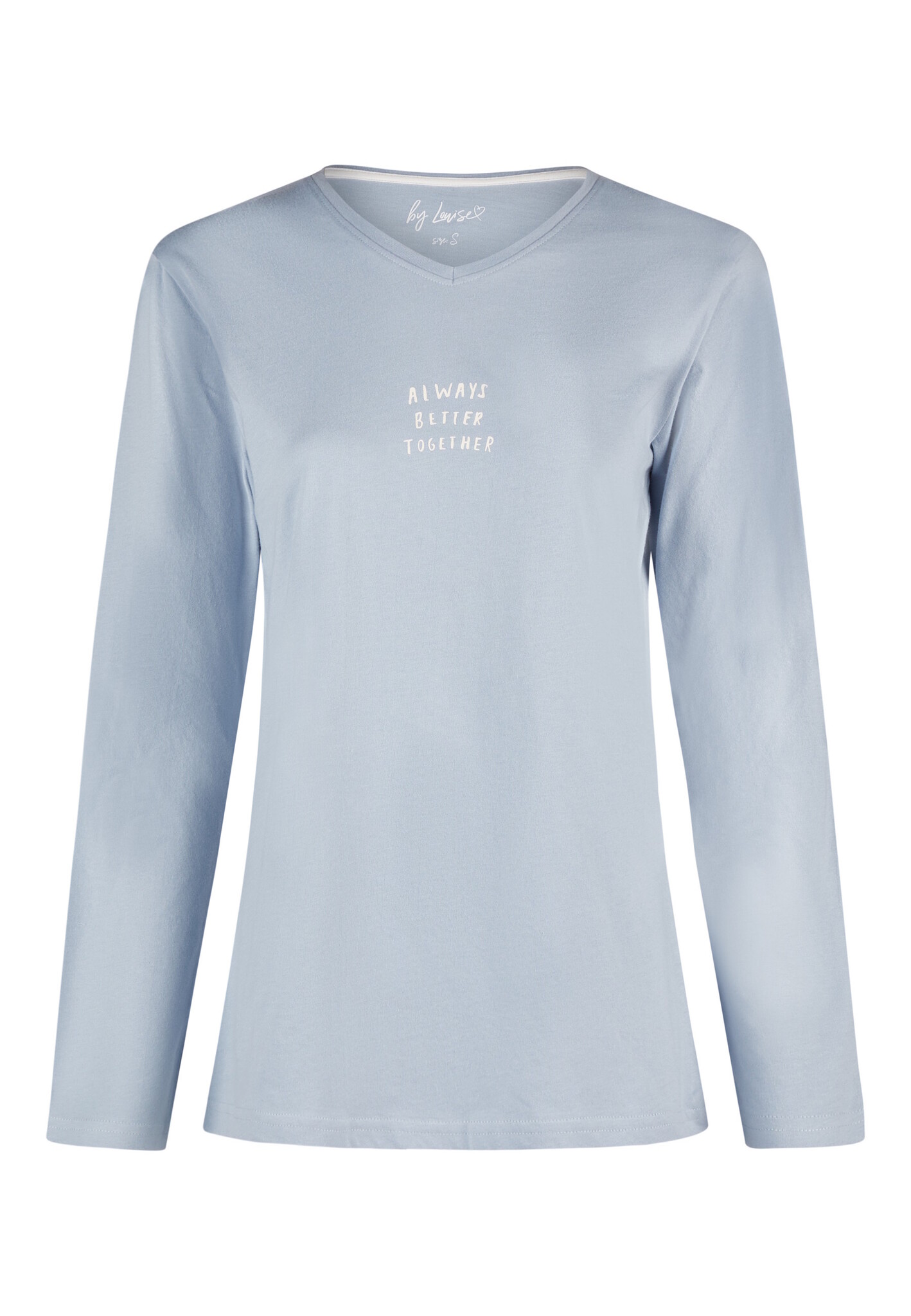 By Louise Dames Pyjama Set Lang V-Hals Blauw Gebloemd