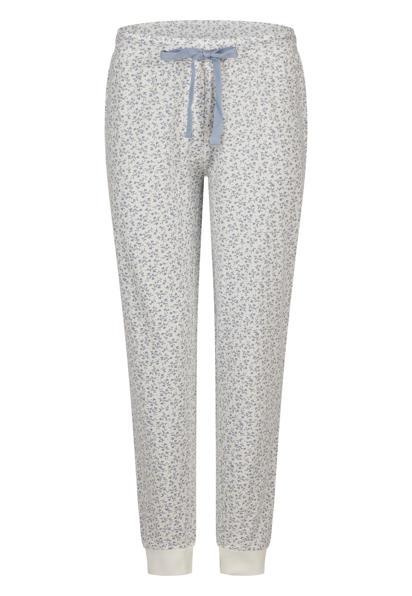 • Bijzondere kenmerken: trekkoordsluiting in de taille en een stijlvolle combinatie van een blauw shirt met een witte, subtiel gebloemde broek