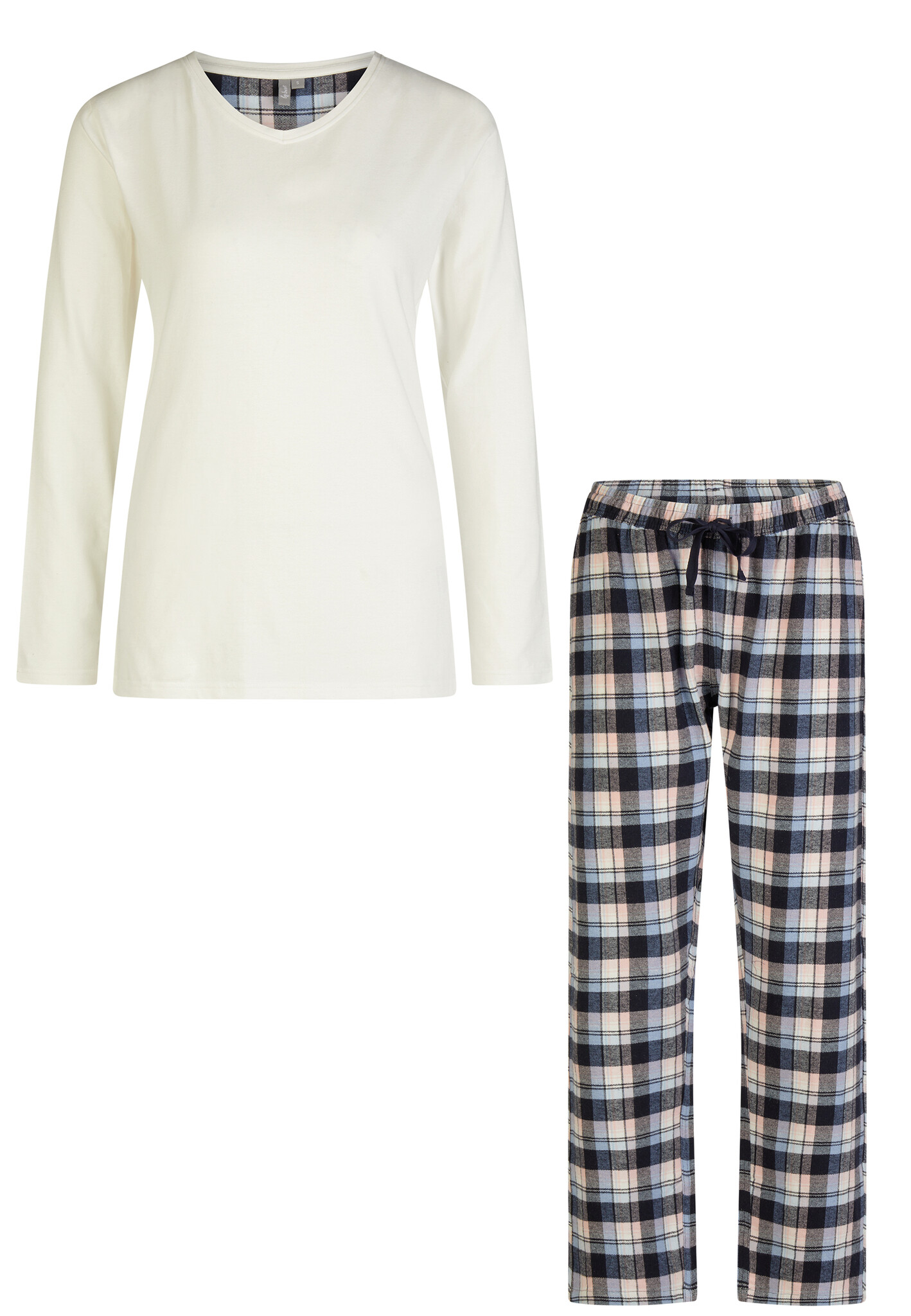 By Louise Dames Pyjama Set Met Flanellen Pyjamabroek Wit/Roze/Grijs