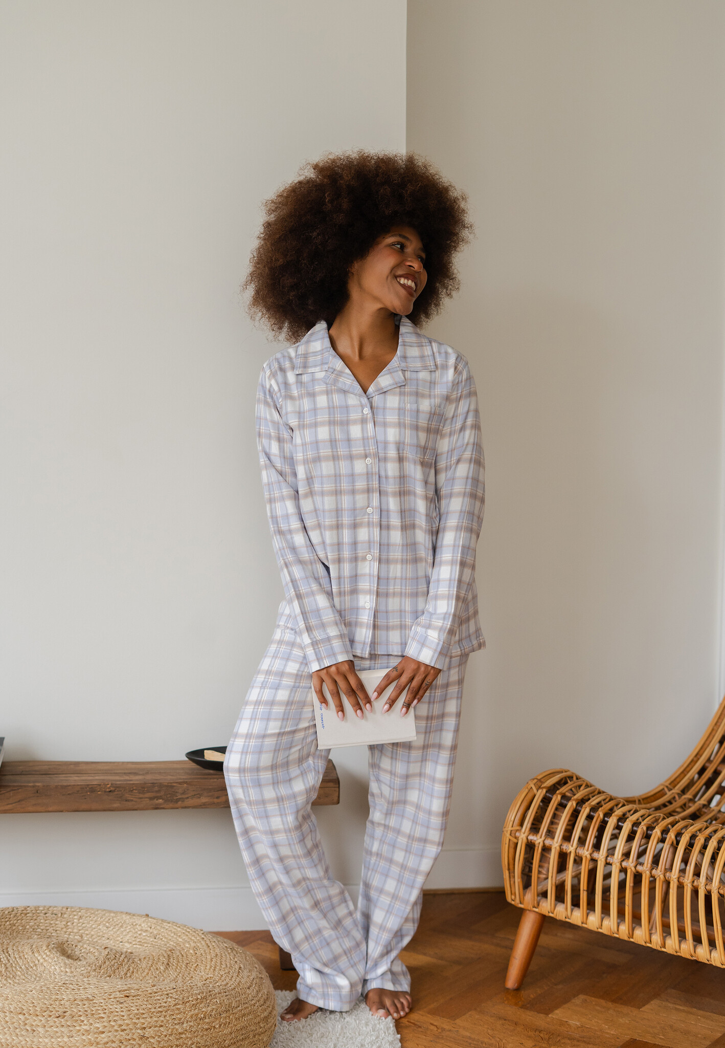 By Louise Dames Pyjamabroek Flanel Geruit Blauw/Wit