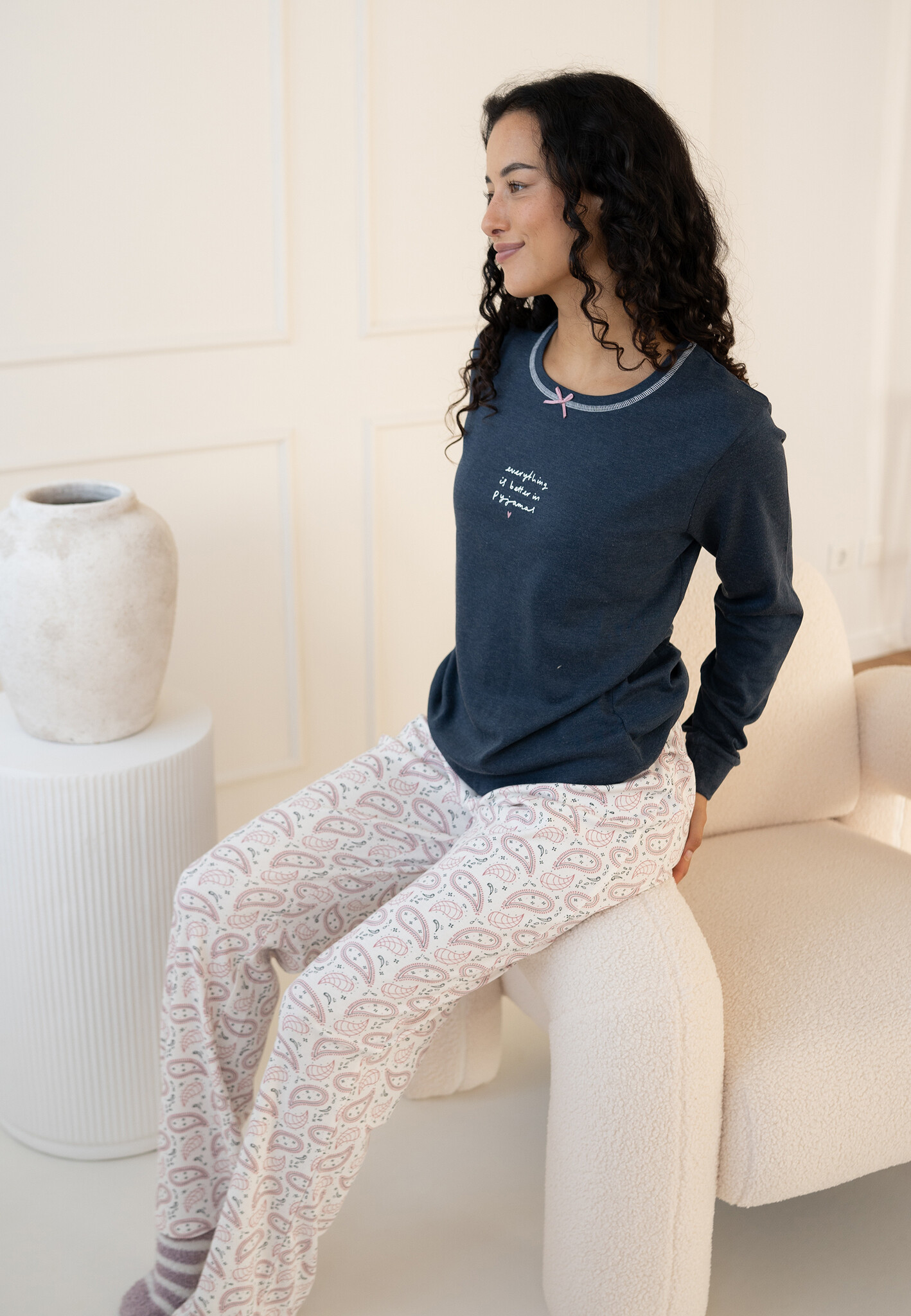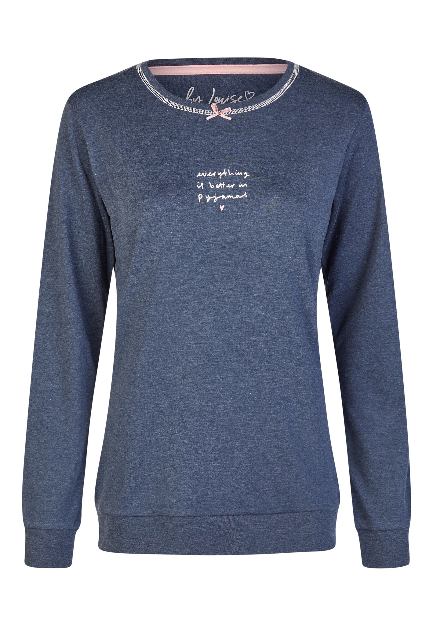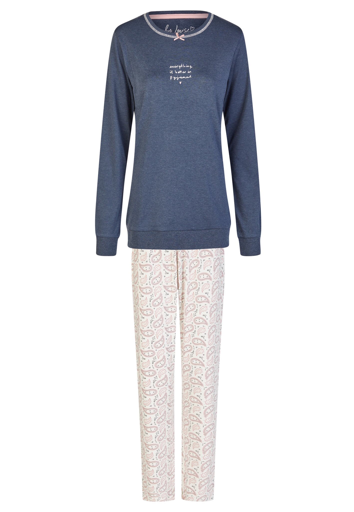 By Louise Dames Winter Pyjama Set Lang Interlock Blauw/Wit Print
