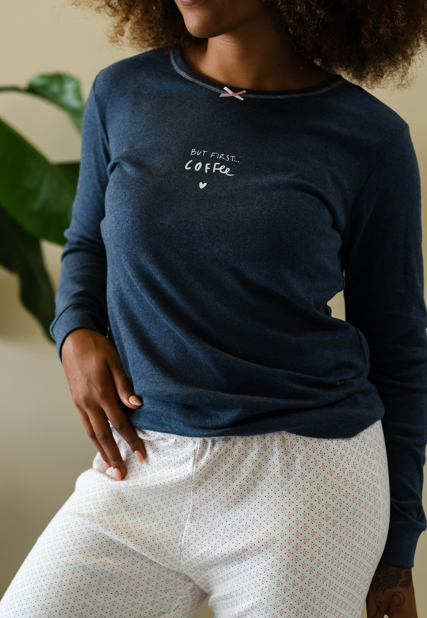 - Lange pyjamabroek en shirt met lange mouwen voor extra warmte