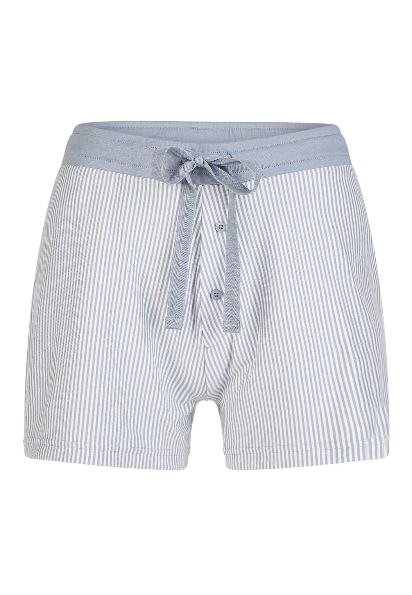 - De korte broek heeft een gestreept dessin en is voorzien van een verstelbaar koord in de taille