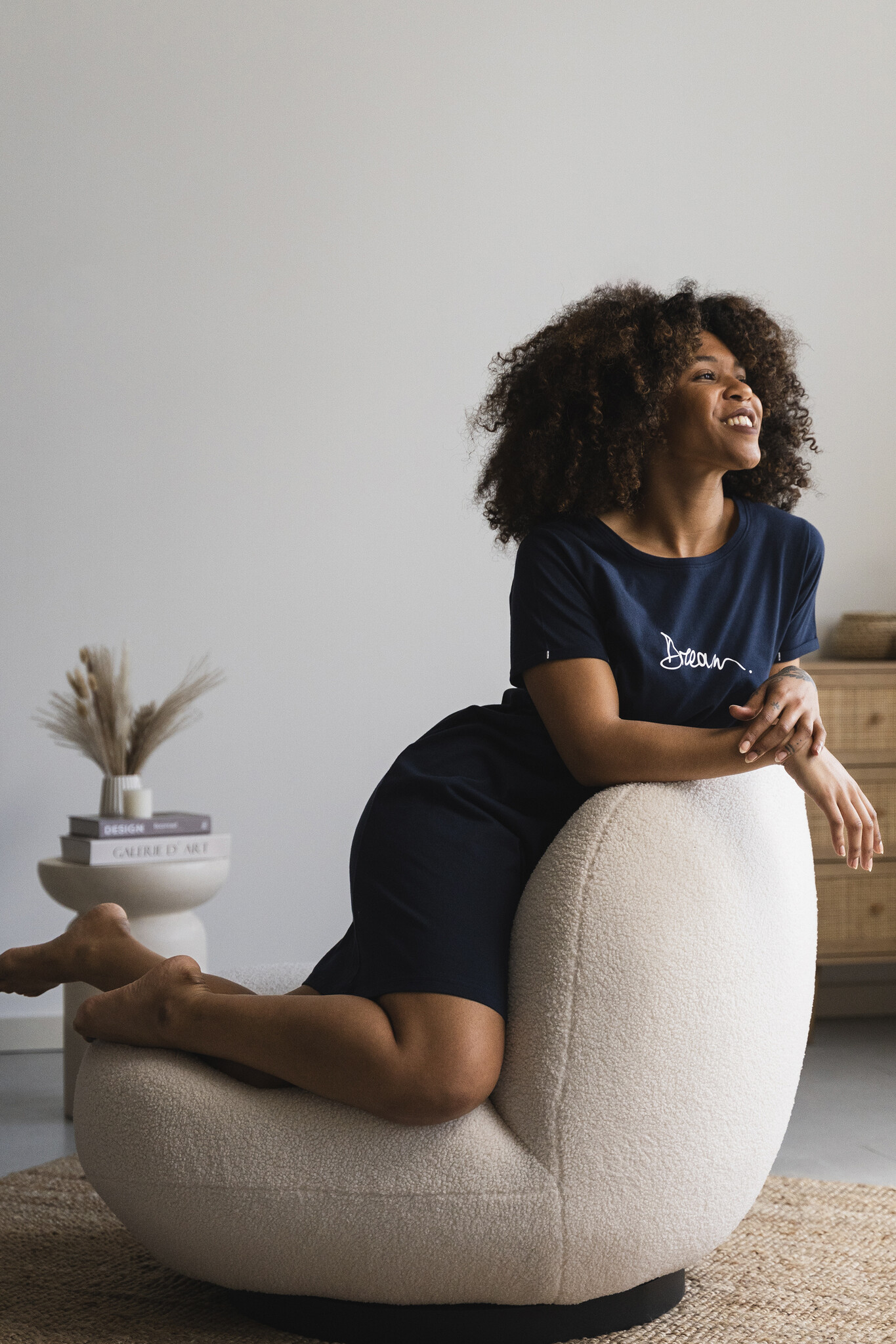 By Louise dames nachthemd blauw met tekst "Dream". Het nachthemd heeft een ronde hals en korte mouwen. Een big shirt is heerlijk om in te slapen of in te loungen op een luie zondag avond.