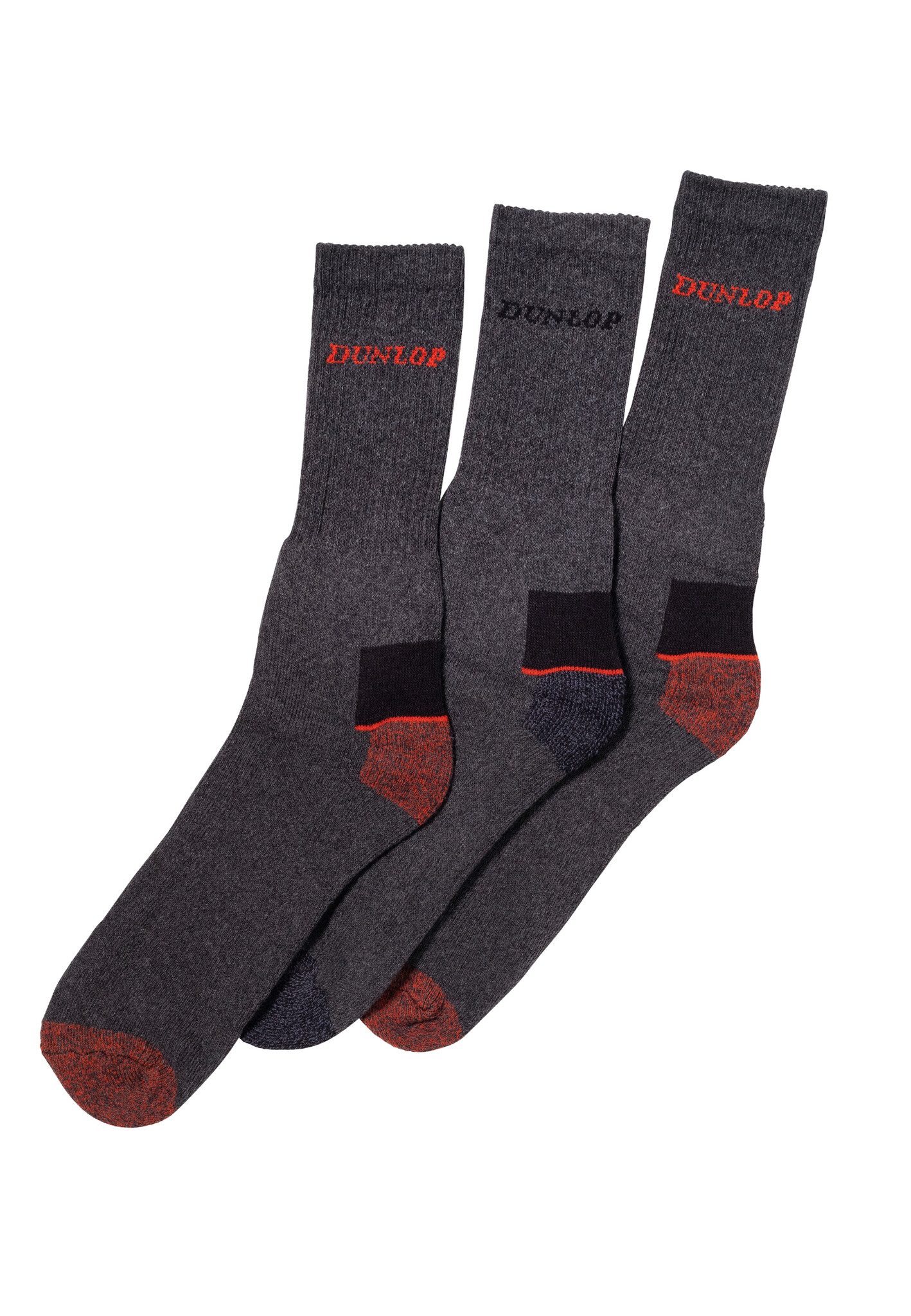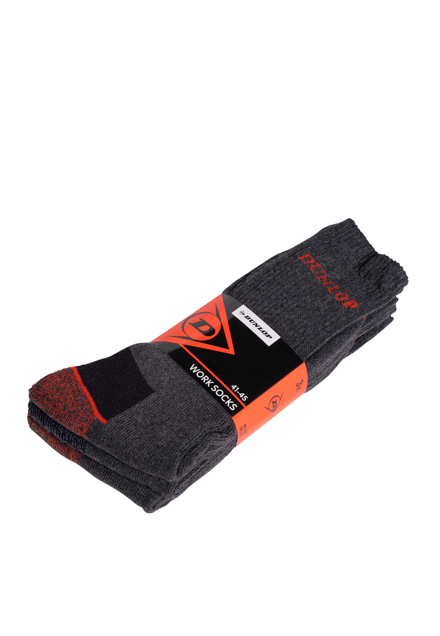 De Dunlop werksokken voor heren zijn ontworpen voor ultieme bescherming en comfort tijdens zware werkomstandigheden. Deze verpakking bevat drie paar sokken, voorzien van het Dunlop-logo en gemaakt met een hoge dichtheid om maximale bescherming te bieden voor de hiel en tenen.
