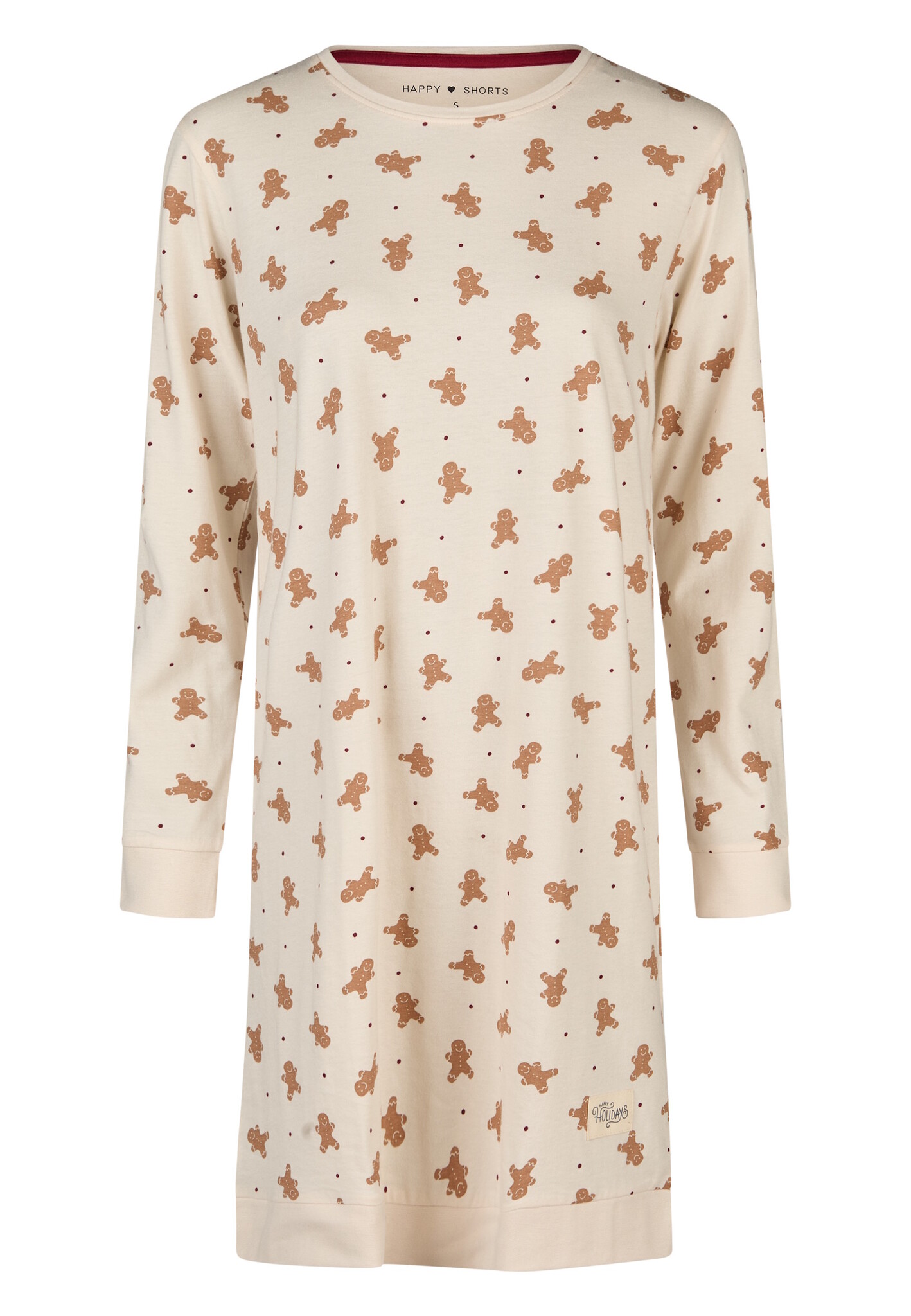 Happy Shorts Happy Shorts Dames Kerst Nachthemd Lange Mouw Wit Gingerbread