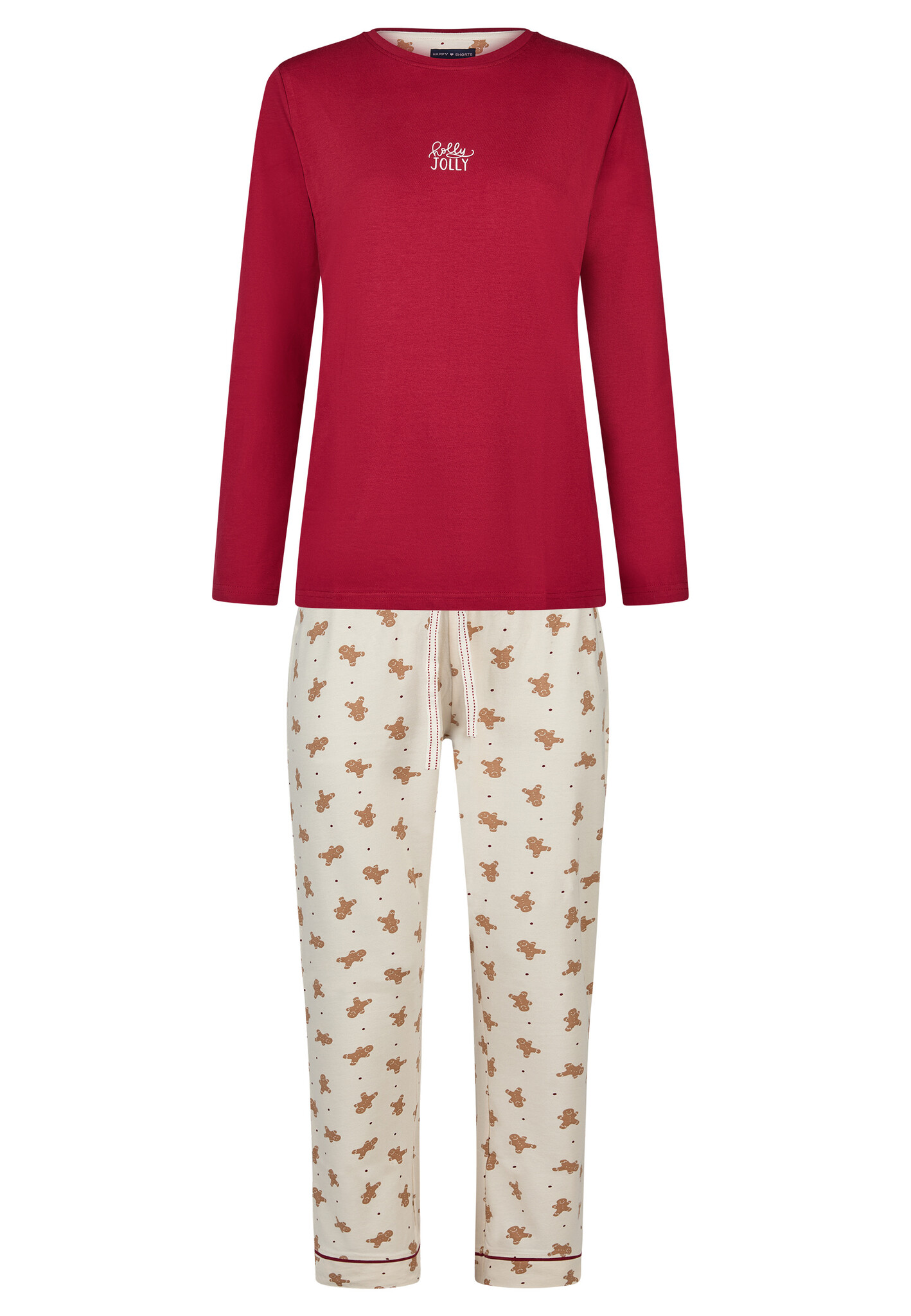 Happy Shorts Dames Kerst Pyjama Set Shirt + Broek Giftbox Rood/Off-White Gingerbread