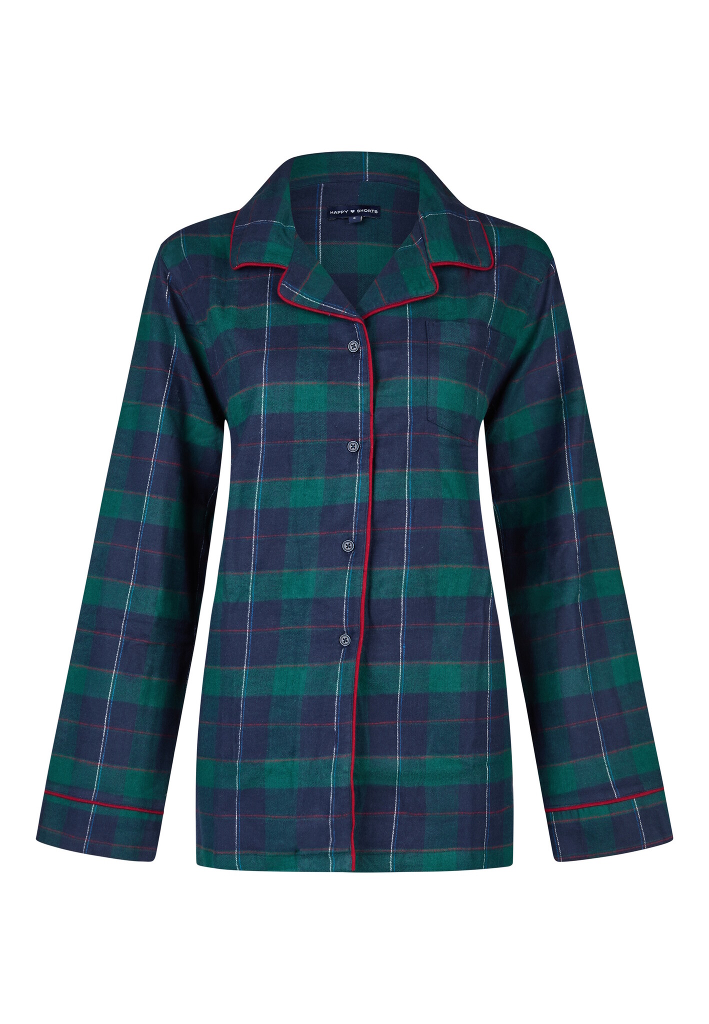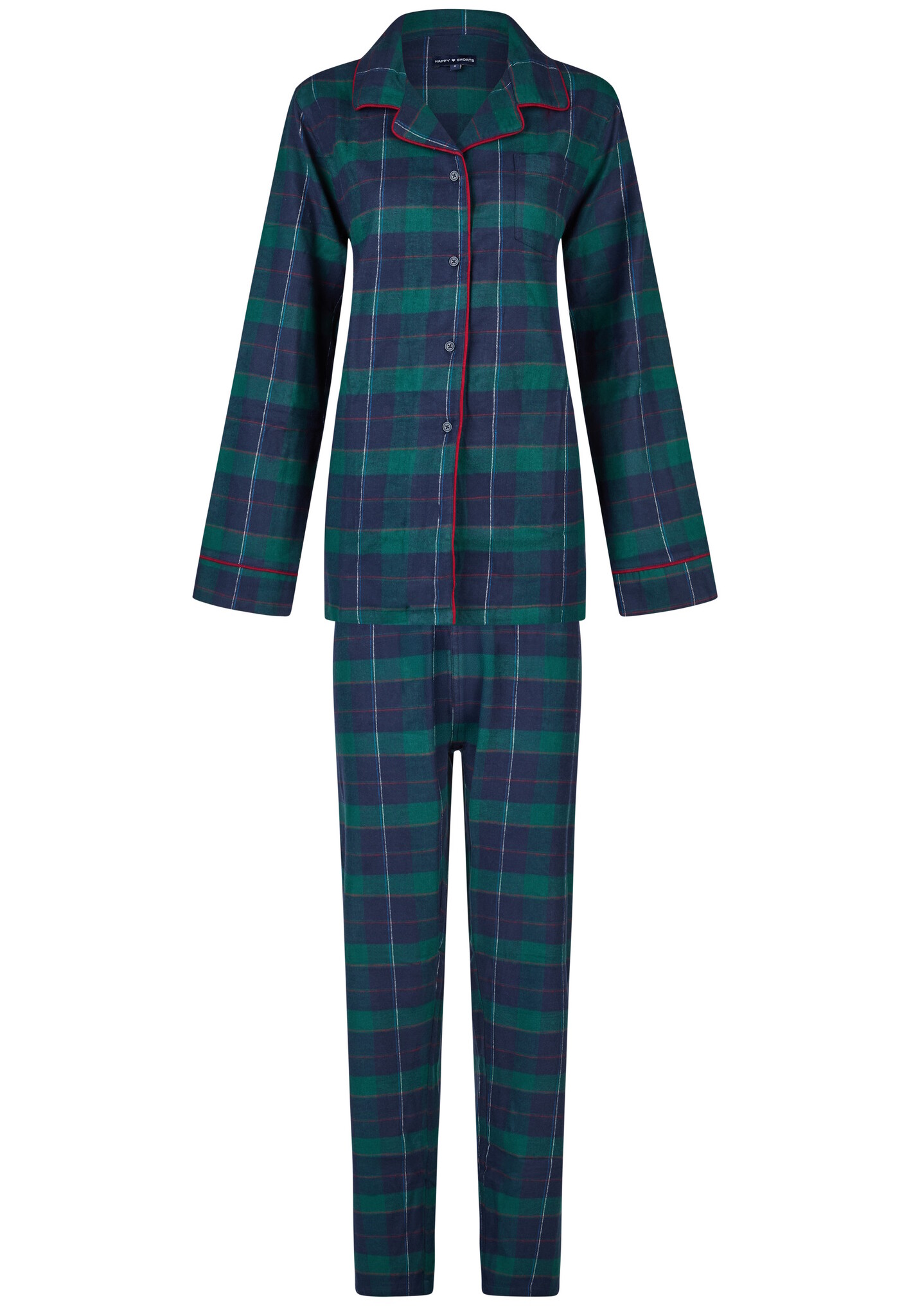 Happy Shorts Dames Kerst Pyjama Set Shirt + Broek Blauw/Groen Geruit Flanel