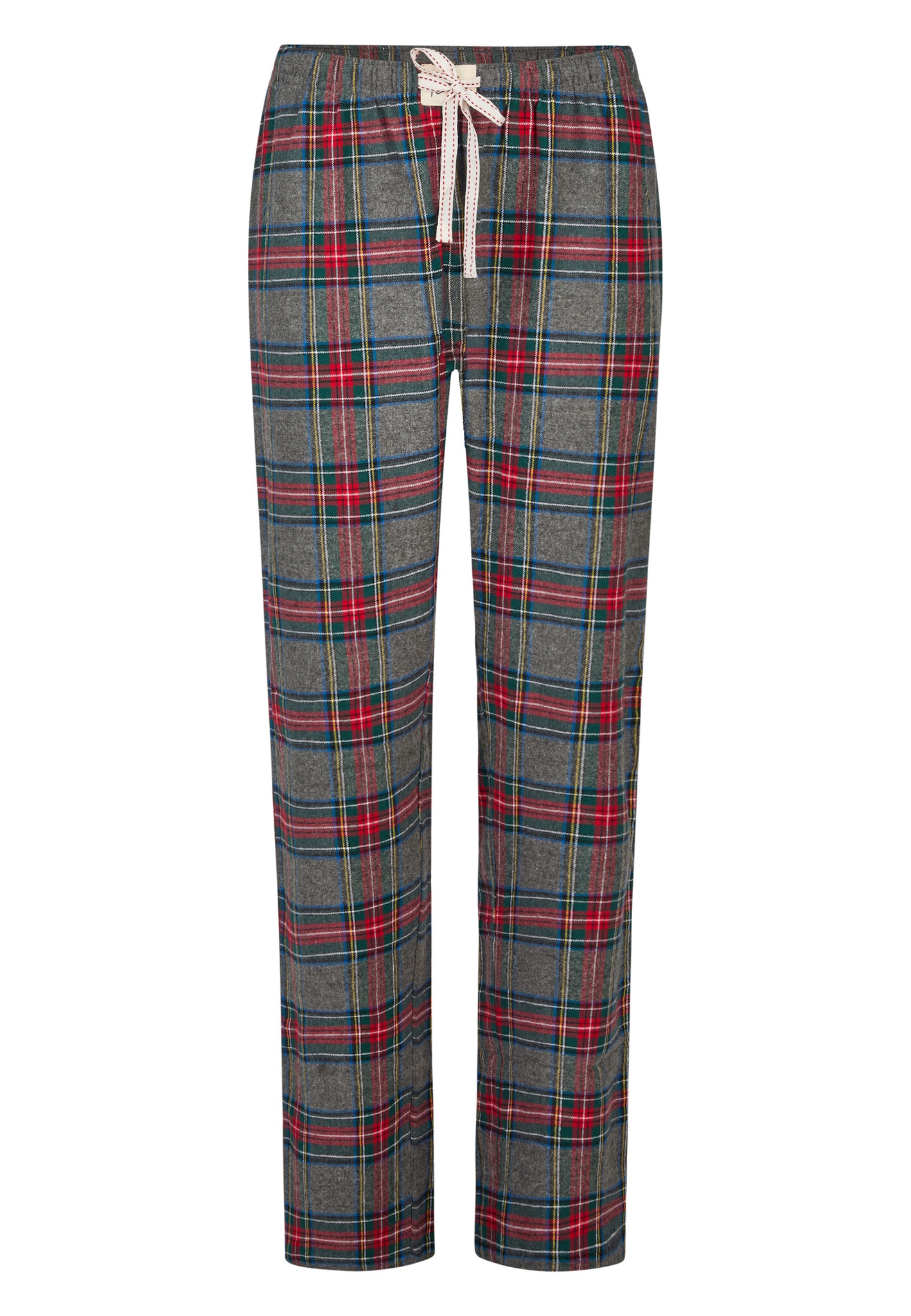 Happy Shorts Dames Pyjama Broek Lang Grijs/Rood Geruit Flanel