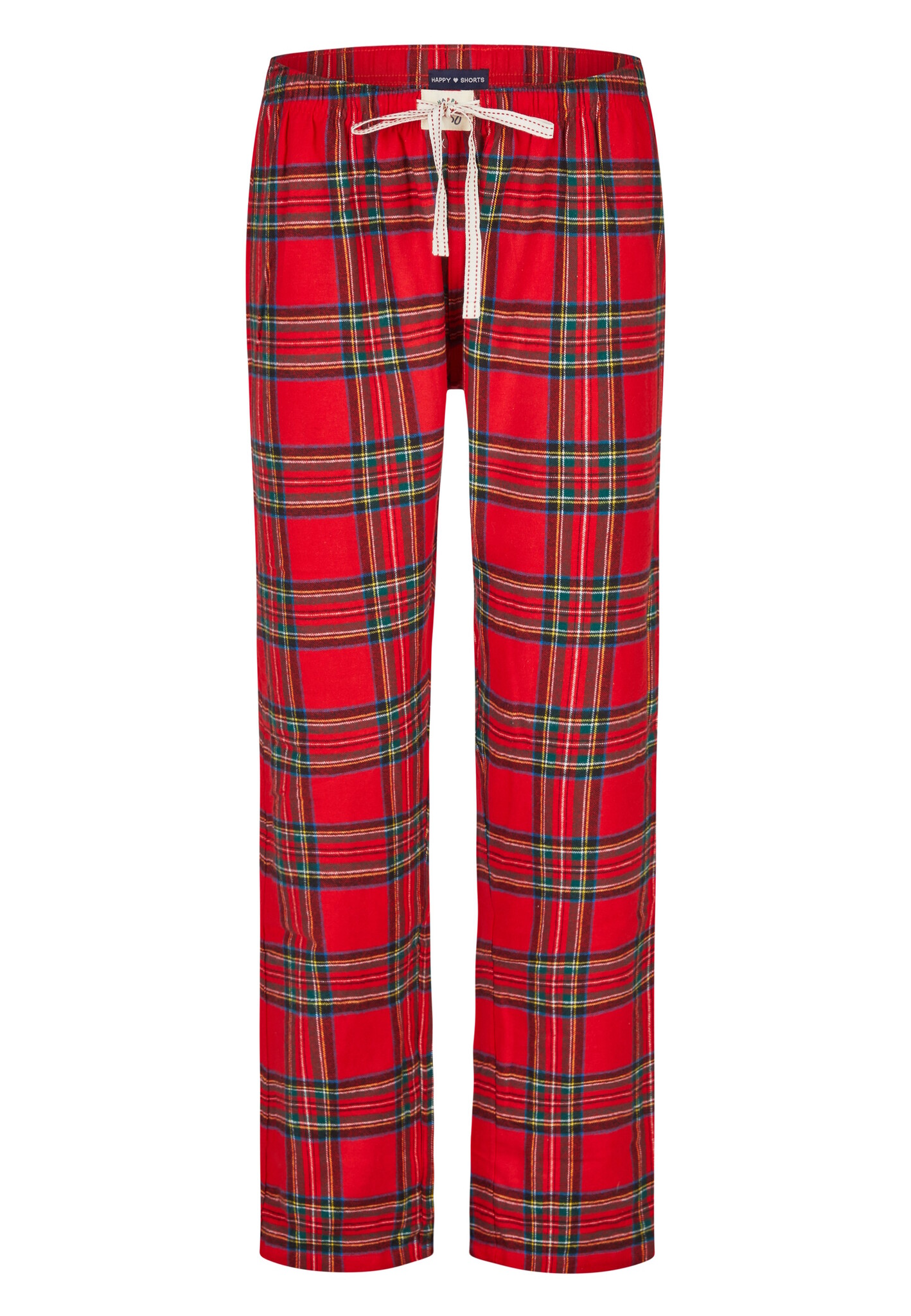 Happy Shorts Dames Pyjama Broek Lang Rood Geruit Flanel