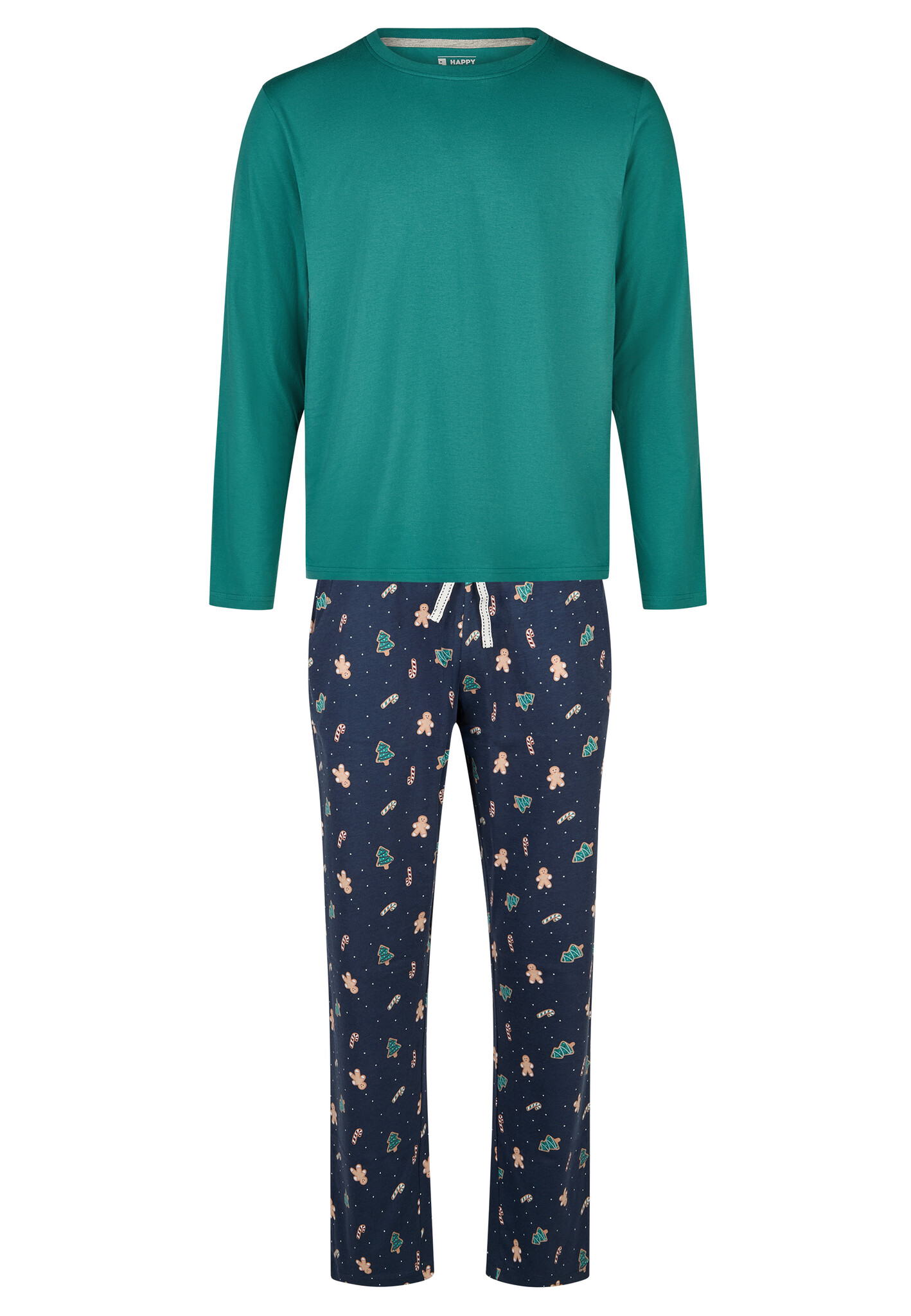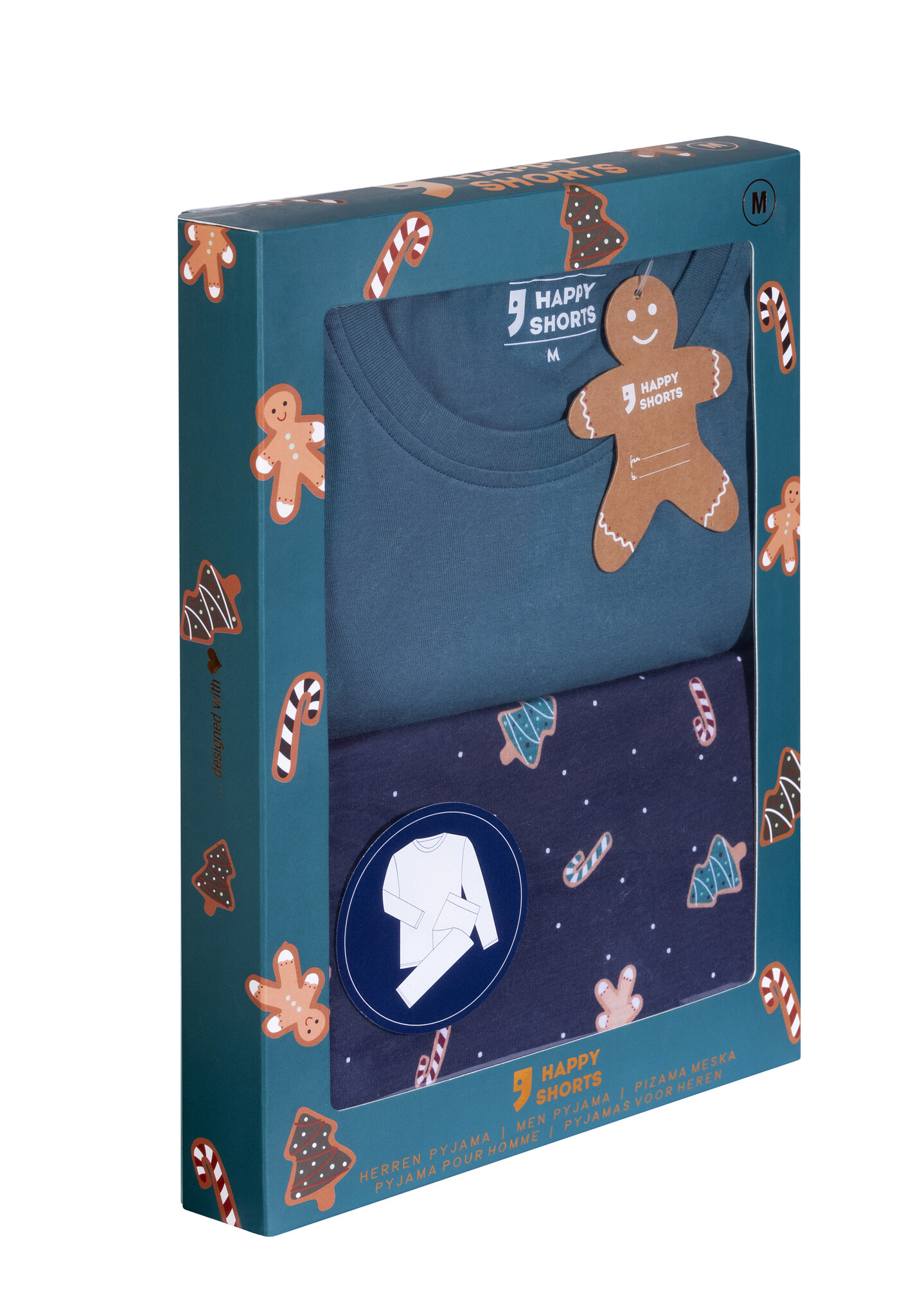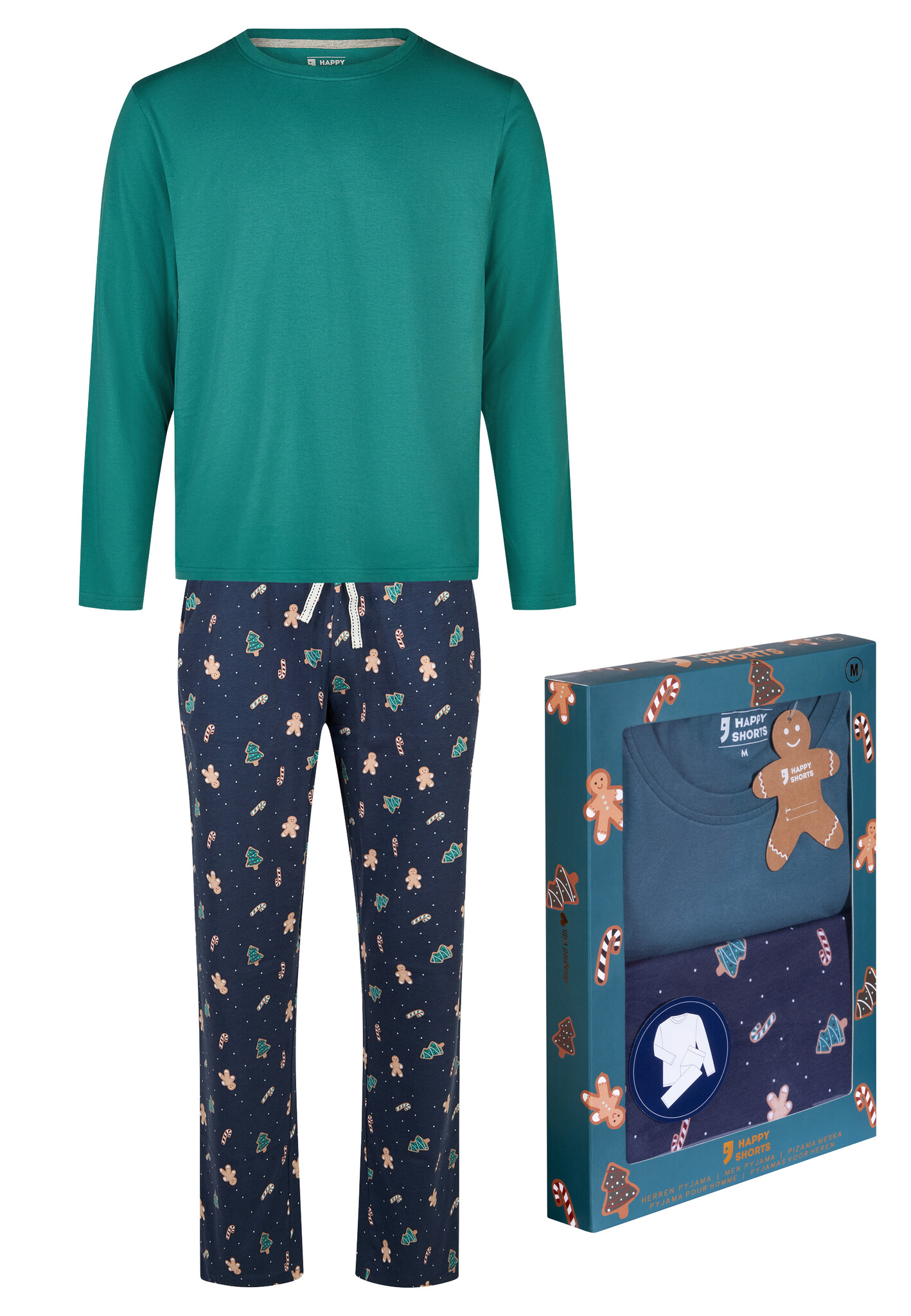 Happy Shorts Heren Kerst Pyjama Set Shirt + Broek Giftbox Groen/Blauw Kerstprint