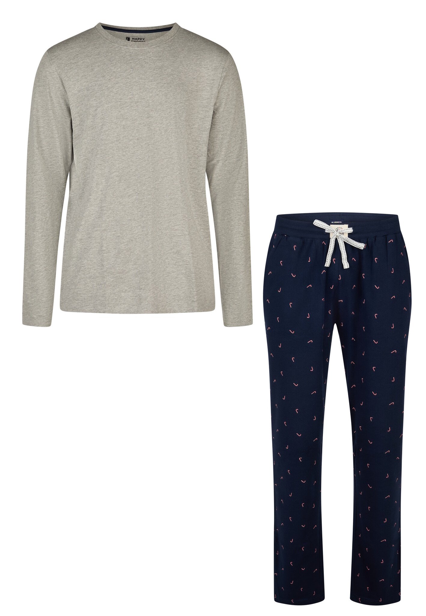 Happy Shorts Heren Kerst Pyjama Set Shirt + Broek Grijs/Donkerblauw Zuurstok Print
