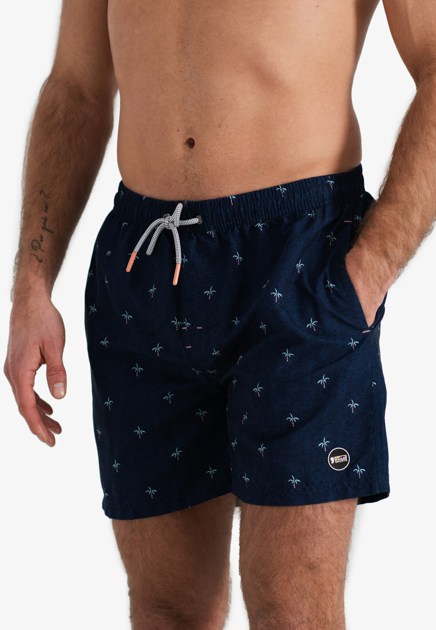 Happy Shorts Heren Zwemshort Palmbomen Donkerblauw Print