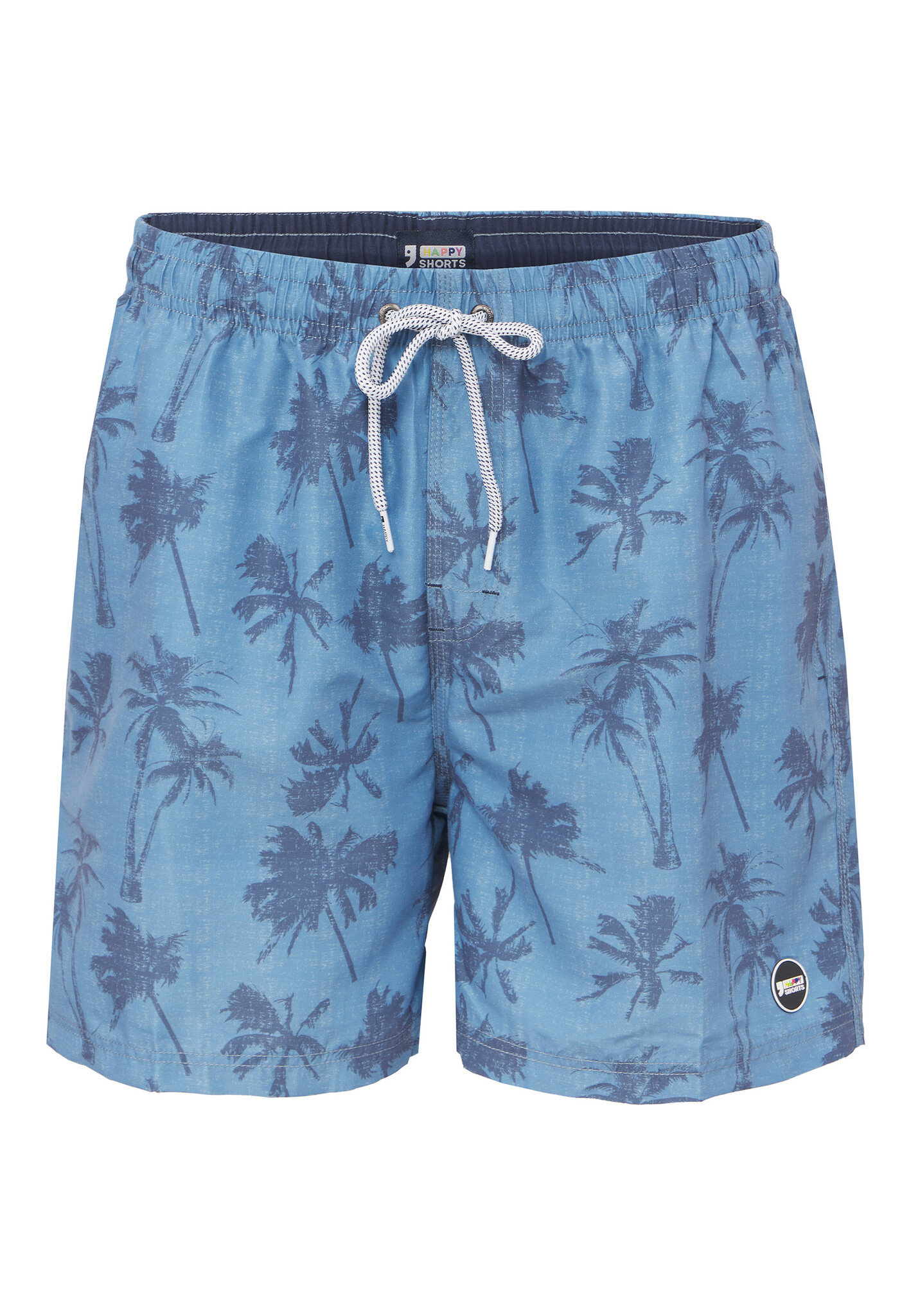 Happy Shorts Heren Zwemshort Palmboom Print Blauw